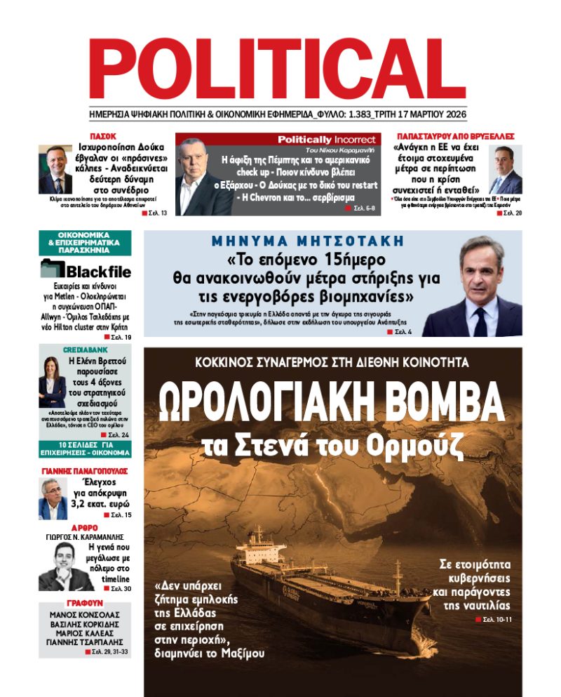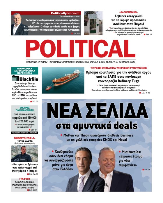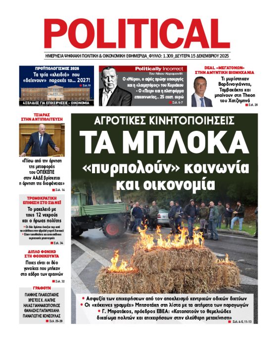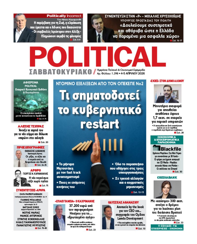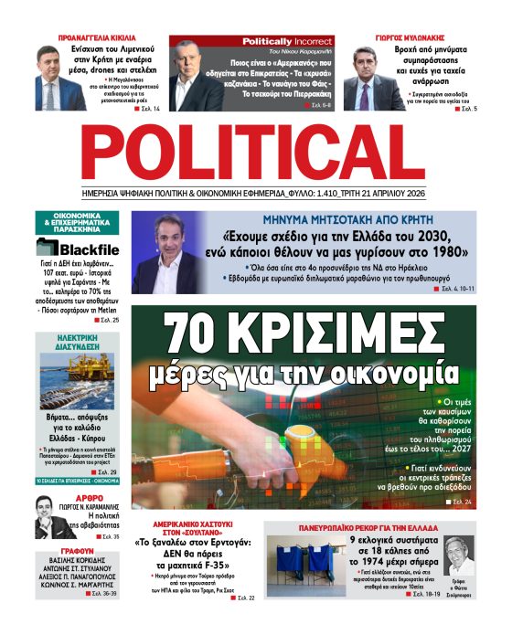 Κάντε κλικ στο εξώφυλλο και διαβάστε ΔΩΡΕΑΝ την Εφημερίδα «POLITICAL»