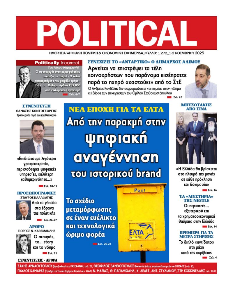 Εφημερίδα Political 01.11.25 1 Νοεμβρίου, 2025 Πατήστε το εικονίδιο και διαβάστε την εφημερίδα σε μορφή PDFΔείτε περισσότερα Share 0 0 0 0 0 0 0 0
