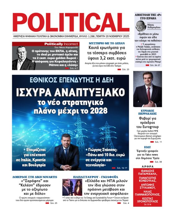 Δείτε περισσότερα Εφημερίδα Political 20.11.25 20 Νοεμβρίου, 2025 Πατήστε το εικονίδιο και διαβάστε την εφημερίδα σε μορφή PDFΔείτε περισσότερα Share 0 0 0 0 0 0 0 0