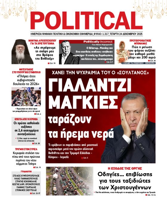 Δείτε περισσότερα Εφημερίδα Political 23.12.25 23 Δεκεμβρίου, 2025 Πατήστε το εικονίδιο και διαβάστε την εφημερίδα σε μορφή PDFΔείτε περισσότερα Share 0 0 0 0 0 0 0 0