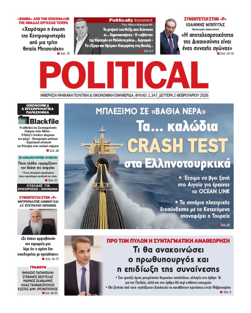 Εφημερίδα Political 02.02.26 2 Φεβρουαρίου, 2026 Πατήστε το εικονίδιο και διαβάστε την εφημερίδα σε μορφή PDFΔείτε περισσότερα Share 0 0 0 0 0 0 0 0