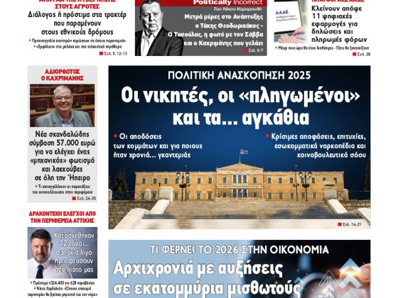 ΕφημερίδαPolitical 02.01.262 Ιανουαρίου, 2026 Total 0 Shares Share 0 Tweet 0 Share 0 Share 0 Share 0 Share 0 Share 0 Share 0 Πατήστε το εικονίδιο και διαβάστε την εφημερίδα σε μορφή PDF Total 1 Shares Share 0 Tweet 0 Pin it 1 Προηγούμενο άρθρο Εφημερίδα Political 31.12.25 31 Δεκεμβρίου, 2025 Δείτε περισσότερα Εγγραφή ΕΓΓΡΑΦΕΙΤΕ ΣΤΟ NEWSLETTER ΜΑΣ Subscribe ΕΠΙΛΕΓΟΝΤΑΣ ΑΥΤΟ ΤΟ ΠΛΑΙΣΙΟ, ΕΠΙΒΕΒΑΙΩΝΕΤΕ ΟΤΙ ΕΧΕΤΕ ΔΙΑΒΑΣΕΙ ΚΑΙ ΑΠΟΔΕΧΕΣΤΕ ΤΟΥΣ ΟΡΟΥΣ ΧΡΗΣΗΣ ΜΑΣ ΣΧΕΤΙΚΑ ΜΕ ΤΗΝ ΑΠΟΘΗΚΕΥΣΗ ΤΩΝ ΔΕΔΟΜΕΝΩΝ ΠΟΥ ΥΠΟΒΑΛΛΟΝΤΑΙ ΜΕΣΩ ΑΥΤΗΣ ΤΗΣ ΦΟΡΜΑΣ. Σύμφωνα με τον Κανονισμό ΕΕ 2016/679 του Ευρωπαϊκού Κοινοβουλίου {Γενικός Κανονισμός Προστασίας Προσωπικών Δεδομένων (GDPR)} που έχει τεθεί σε ισχύ από τις 25 Μαΐου 2018, και του Ν.4624/2019 που έχει τεθεί σε ισχύ από 29/8/2019, απαιτείται η συγκατάθεσή σας για να μετέχετε στην επικοινωνία με την παρούσα διεύθυνση ηλεκτρονικού ταχυδρομείου ή το κινητό σας τηλέφωνο. Σε περίπτωση που δεν επιθυμείτε να λαμβάνετε μηνύματα και ενημερώσεις από την παρούσα ηλεκτρονική διεύθυνση ή/και δεν επιθυμείτε να τηρούμε αρχείο της διεύθυνσης ηλεκτρονικού ταχυδρομείου ή και του αριθμού του κινητού σας τηλεφώνου, μπορείτε να ασκήσετε τα δικαιώματά σας βάσει του άρθρου 13,παρ.2, του Κανονισμού ΕΕ 2016/679 και να διαγραφείτε κάνοντας κλικ στο link που ακολουθεί. Σας ενημερώνουμε επίσης ότι η διεύθυνση ηλεκτρονικού σας ταχυδρομείου ή το κινητό σας τηλέφωνο, παραμένουν απόρρητα και δεν γνωστοποιούνται σε τρίτους. Εάν λάβατε το μήνυμα αυτό κατά λάθος, παρακαλούμε δεχθείτε τις απολογίες μας για την ενόχληση. Δείτε επίσης... Δείτε περισσότερα Political 31.12.25 31 Δεκεμβρίου, 2025 Δείτε περισσότερα Political 30.12.25 30 Δεκεμβρίου, 2025 Δείτε περισσότερα Political 29.12.25 29 Δεκεμβρίου, 2025 Δείτε περισσότερα Political 27.12.25 27 Δεκεμβρίου, 2025 Δείτε περισσότερα Political 24.12.25 24 Δεκεμβρίου, 2025 Δείτε περισσότερα Political 23.12.25 23 Δεκεμβρίου, 2025 Δείτε περισσότερα Political 22.12.25 22 Δεκεμβρίου, 2025 Δείτε περισσότερα Political 20.12.25 20 Δεκεμβρίου, 2025