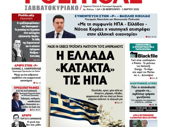 ΕφημερίδαPolitical 02.03.262 Μαρτίου, 2026 Total 0 Shares Share 0 Tweet 0 Share 0 Share 0 Share 0 Share 0 Share 0 Share 0 Πατήστε το εικονίδιο και διαβάστε την εφημερίδα σε μορφή PDF Total 0 Shares Share 0 Tweet 0 Pin it 1 Προηγούμενο άρθρο Εφημερίδα Political 28.02.26 28 Φεβρουαρίου, 2026 Δείτε περισσότερα Εγγραφή ΕΓΓΡΑΦΕΙΤΕ ΣΤΟ NEWSLETTER ΜΑΣ Subscribe ΕΠΙΛΕΓΟΝΤΑΣ ΑΥΤΟ ΤΟ ΠΛΑΙΣΙΟ, ΕΠΙΒΕΒΑΙΩΝΕΤΕ ΟΤΙ ΕΧΕΤΕ ΔΙΑΒΑΣΕΙ ΚΑΙ ΑΠΟΔΕΧΕΣΤΕ ΤΟΥΣ ΟΡΟΥΣ ΧΡΗΣΗΣ ΜΑΣ ΣΧΕΤΙΚΑ ΜΕ ΤΗΝ ΑΠΟΘΗΚΕΥΣΗ ΤΩΝ ΔΕΔΟΜΕΝΩΝ ΠΟΥ ΥΠΟΒΑΛΛΟΝΤΑΙ ΜΕΣΩ ΑΥΤΗΣ ΤΗΣ ΦΟΡΜΑΣ. Σύμφωνα με τον Κανονισμό ΕΕ 2016/679 του Ευρωπαϊκού Κοινοβουλίου {Γενικός Κανονισμός Προστασίας Προσωπικών Δεδομένων (GDPR)} που έχει τεθεί σε ισχύ από τις 25 Μαΐου 2018, και του Ν.4624/2019 που έχει τεθεί σε ισχύ από 29/8/2019, απαιτείται η συγκατάθεσή σας για να μετέχετε στην επικοινωνία με την παρούσα διεύθυνση ηλεκτρονικού ταχυδρομείου ή το κινητό σας τηλέφωνο. Σε περίπτωση που δεν επιθυμείτε να λαμβάνετε μηνύματα και ενημερώσεις από την παρούσα ηλεκτρονική διεύθυνση ή/και δεν επιθυμείτε να τηρούμε αρχείο της διεύθυνσης ηλεκτρονικού ταχυδρομείου ή και του αριθμού του κινητού σας τηλεφώνου, μπορείτε να ασκήσετε τα δικαιώματά σας βάσει του άρθρου 13,παρ.2, του Κανονισμού ΕΕ 2016/679 και να διαγραφείτε κάνοντας κλικ στο link που ακολουθεί. Σας ενημερώνουμε επίσης ότι η διεύθυνση ηλεκτρονικού σας ταχυδρομείου ή το κινητό σας τηλέφωνο, παραμένουν απόρρητα και δεν γνωστοποιούνται σε τρίτους. Εάν λάβατε το μήνυμα αυτό κατά λάθος, παρακαλούμε δεχθείτε τις απολογίες μας για την ενόχληση. Δείτε επίσης... Δείτε περισσότερα Political 28.02.26 28 Φεβρουαρίου, 2026 Δείτε περισσότερα Political 27.02.26 27 Φεβρουαρίου, 2026 Δείτε περισσότερα Political 26.02.26 26 Φεβρουαρίου, 2026 Δείτε περισσότερα Political 25.02.26 25 Φεβρουαρίου, 2026 Δείτε περισσότερα Political 24.02.26 24 Φεβρουαρίου, 2026 Δείτε περισσότερα Political 21.02.26 21 Φεβρουαρίου, 2026 Δείτε περισσότερα Political 20.02.26 20 Φεβρουαρίου, 2026 Δείτε περισσότερα Political 19.02.26 19 Φεβρουαρίου, 2026