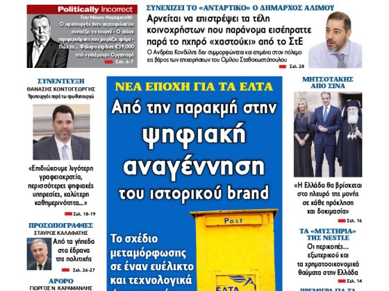 ΕφημερίδαPolitical 03.11.253 Νοεμβρίου, 2025 Total 0 Shares Share 0 Tweet 0 Share 0 Share 0 Share 0 Share 0 Share 0 Share 0 Πατήστε το εικονίδιο και διαβάστε την εφημερίδα σε μορφή PDF Total 1 Shares Share 0 Tweet 0 Pin it 1 Προηγούμενο άρθρο Εφημερίδα Political 01.11.25 1 Νοεμβρίου, 2025 Δείτε περισσότερα Εγγραφή ΕΓΓΡΑΦΕΙΤΕ ΣΤΟ NEWSLETTER ΜΑΣ Subscribe ΕΠΙΛΕΓΟΝΤΑΣ ΑΥΤΟ ΤΟ ΠΛΑΙΣΙΟ, ΕΠΙΒΕΒΑΙΩΝΕΤΕ ΟΤΙ ΕΧΕΤΕ ΔΙΑΒΑΣΕΙ ΚΑΙ ΑΠΟΔΕΧΕΣΤΕ ΤΟΥΣ ΟΡΟΥΣ ΧΡΗΣΗΣ ΜΑΣ ΣΧΕΤΙΚΑ ΜΕ ΤΗΝ ΑΠΟΘΗΚΕΥΣΗ ΤΩΝ ΔΕΔΟΜΕΝΩΝ ΠΟΥ ΥΠΟΒΑΛΛΟΝΤΑΙ ΜΕΣΩ ΑΥΤΗΣ ΤΗΣ ΦΟΡΜΑΣ. Σύμφωνα με τον Κανονισμό ΕΕ 2016/679 του Ευρωπαϊκού Κοινοβουλίου {Γενικός Κανονισμός Προστασίας Προσωπικών Δεδομένων (GDPR)} που έχει τεθεί σε ισχύ από τις 25 Μαΐου 2018, και του Ν.4624/2019 που έχει τεθεί σε ισχύ από 29/8/2019, απαιτείται η συγκατάθεσή σας για να μετέχετε στην επικοινωνία με την παρούσα διεύθυνση ηλεκτρονικού ταχυδρομείου ή το κινητό σας τηλέφωνο. Σε περίπτωση που δεν επιθυμείτε να λαμβάνετε μηνύματα και ενημερώσεις από την παρούσα ηλεκτρονική διεύθυνση ή/και δεν επιθυμείτε να τηρούμε αρχείο της διεύθυνσης ηλεκτρονικού ταχυδρομείου ή και του αριθμού του κινητού σας τηλεφώνου, μπορείτε να ασκήσετε τα δικαιώματά σας βάσει του άρθρου 13,παρ.2, του Κανονισμού ΕΕ 2016/679 και να διαγραφείτε κάνοντας κλικ στο link που ακολουθεί. Σας ενημερώνουμε επίσης ότι η διεύθυνση ηλεκτρονικού σας ταχυδρομείου ή το κινητό σας τηλέφωνο, παραμένουν απόρρητα και δεν γνωστοποιούνται σε τρίτους. Εάν λάβατε το μήνυμα αυτό κατά λάθος, παρακαλούμε δεχθείτε τις απολογίες μας για την ενόχληση. Δείτε επίσης... Δείτε περισσότερα Political 01.11.25 1 Νοεμβρίου, 2025 Δείτε περισσότερα Political 31.10.25 31 Οκτωβρίου, 2025 Δείτε περισσότερα Political 30.10.25 30 Οκτωβρίου, 2025 Δείτε περισσότερα Political 29.10.25 29 Οκτωβρίου, 2025 Δείτε περισσότερα Political 25.10.25 25 Οκτωβρίου, 2025 Δείτε περισσότερα Political 24.10.25 24 Οκτωβρίου, 2025 Δείτε περισσότερα Political 23.10.25 23 Οκτωβρίου, 2025 Δείτε περισσότερα Political 22.10.25 22 Οκτωβρίου, 2025