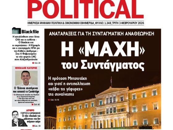 ΕφημερίδαPolitical 04.02.264 Φεβρουαρίου, 2026 Total 0 Shares Share 0 Tweet 0 Share 0 Share 0 Share 0 Share 0 Share 0 Share 0 Πατήστε το εικονίδιο και διαβάστε την εφημερίδα σε μορφή PDF Total 1 Shares Share 0 Tweet 0 Pin it 1 Προηγούμενο άρθρο Εφημερίδα Political 03.02.26 3 Φεβρουαρίου, 2026 Δείτε περισσότερα Εγγραφή ΕΓΓΡΑΦΕΙΤΕ ΣΤΟ NEWSLETTER ΜΑΣ Subscribe ΕΠΙΛΕΓΟΝΤΑΣ ΑΥΤΟ ΤΟ ΠΛΑΙΣΙΟ, ΕΠΙΒΕΒΑΙΩΝΕΤΕ ΟΤΙ ΕΧΕΤΕ ΔΙΑΒΑΣΕΙ ΚΑΙ ΑΠΟΔΕΧΕΣΤΕ ΤΟΥΣ ΟΡΟΥΣ ΧΡΗΣΗΣ ΜΑΣ ΣΧΕΤΙΚΑ ΜΕ ΤΗΝ ΑΠΟΘΗΚΕΥΣΗ ΤΩΝ ΔΕΔΟΜΕΝΩΝ ΠΟΥ ΥΠΟΒΑΛΛΟΝΤΑΙ ΜΕΣΩ ΑΥΤΗΣ ΤΗΣ ΦΟΡΜΑΣ. Σύμφωνα με τον Κανονισμό ΕΕ 2016/679 του Ευρωπαϊκού Κοινοβουλίου {Γενικός Κανονισμός Προστασίας Προσωπικών Δεδομένων (GDPR)} που έχει τεθεί σε ισχύ από τις 25 Μαΐου 2018, και του Ν.4624/2019 που έχει τεθεί σε ισχύ από 29/8/2019, απαιτείται η συγκατάθεσή σας για να μετέχετε στην επικοινωνία με την παρούσα διεύθυνση ηλεκτρονικού ταχυδρομείου ή το κινητό σας τηλέφωνο. Σε περίπτωση που δεν επιθυμείτε να λαμβάνετε μηνύματα και ενημερώσεις από την παρούσα ηλεκτρονική διεύθυνση ή/και δεν επιθυμείτε να τηρούμε αρχείο της διεύθυνσης ηλεκτρονικού ταχυδρομείου ή και του αριθμού του κινητού σας τηλεφώνου, μπορείτε να ασκήσετε τα δικαιώματά σας βάσει του άρθρου 13,παρ.2, του Κανονισμού ΕΕ 2016/679 και να διαγραφείτε κάνοντας κλικ στο link που ακολουθεί. Σας ενημερώνουμε επίσης ότι η διεύθυνση ηλεκτρονικού σας ταχυδρομείου ή το κινητό σας τηλέφωνο, παραμένουν απόρρητα και δεν γνωστοποιούνται σε τρίτους. Εάν λάβατε το μήνυμα αυτό κατά λάθος, παρακαλούμε δεχθείτε τις απολογίες μας για την ενόχληση. Δείτε επίσης... Δείτε περισσότερα Political 03.02.26 3 Φεβρουαρίου, 2026 Δείτε περισσότερα Political 02.02.26 2 Φεβρουαρίου, 2026 Δείτε περισσότερα Political 31.01.26 31 Ιανουαρίου, 2026 Δείτε περισσότερα Political 30.01.26 30 Ιανουαρίου, 2026 Δείτε περισσότερα Political 29.01.26 29 Ιανουαρίου, 2026 Δείτε περισσότερα Political 28.01.26 28 Ιανουαρίου, 2026 Δείτε περισσότερα Political 27.01.26 27 Ιανουαρίου, 2026 Δείτε περισσότερα Political 26.01.26 26 Ιανουαρίου, 2026