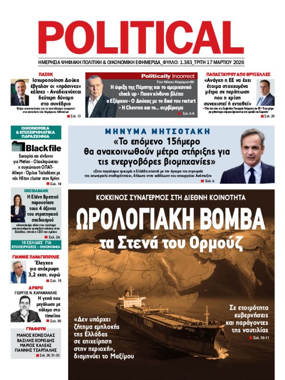 ΕφημερίδαPolitical 04.12.254 Δεκεμβρίου, 2025 Total 0 Shares Share 0 Tweet 0 Share 0 Share 0 Share 0 Share 0 Share 0 Share 0 Πατήστε το εικονίδιο και διαβάστε την εφημερίδα σε μορφή PDF Total 0 Shares Share 0 Tweet 0 Pin it 1 Προηγούμενο άρθρο Εφημερίδα Political 03.12.25 3 Δεκεμβρίου, 2025 Δείτε περισσότερα Επόμενο άρθρο Εφημερίδα Political 05.12.25 5 Δεκεμβρίου, 2025 Δείτε περισσότερα Εγγραφή ΕΓΓΡΑΦΕΙΤΕ ΣΤΟ NEWSLETTER ΜΑΣ Subscribe ΕΠΙΛΕΓΟΝΤΑΣ ΑΥΤΟ ΤΟ ΠΛΑΙΣΙΟ, ΕΠΙΒΕΒΑΙΩΝΕΤΕ ΟΤΙ ΕΧΕΤΕ ΔΙΑΒΑΣΕΙ ΚΑΙ ΑΠΟΔΕΧΕΣΤΕ ΤΟΥΣ ΟΡΟΥΣ ΧΡΗΣΗΣ ΜΑΣ ΣΧΕΤΙΚΑ ΜΕ ΤΗΝ ΑΠΟΘΗΚΕΥΣΗ ΤΩΝ ΔΕΔΟΜΕΝΩΝ ΠΟΥ ΥΠΟΒΑΛΛΟΝΤΑΙ ΜΕΣΩ ΑΥΤΗΣ ΤΗΣ ΦΟΡΜΑΣ. Σύμφωνα με τον Κανονισμό ΕΕ 2016/679 του Ευρωπαϊκού Κοινοβουλίου {Γενικός Κανονισμός Προστασίας Προσωπικών Δεδομένων (GDPR)} που έχει τεθεί σε ισχύ από τις 25 Μαΐου 2018, και του Ν.4624/2019 που έχει τεθεί σε ισχύ από 29/8/2019, απαιτείται η συγκατάθεσή σας για να μετέχετε στην επικοινωνία με την παρούσα διεύθυνση ηλεκτρονικού ταχυδρομείου ή το κινητό σας τηλέφωνο. Σε περίπτωση που δεν επιθυμείτε να λαμβάνετε μηνύματα και ενημερώσεις από την παρούσα ηλεκτρονική διεύθυνση ή/και δεν επιθυμείτε να τηρούμε αρχείο της διεύθυνσης ηλεκτρονικού ταχυδρομείου ή και του αριθμού του κινητού σας τηλεφώνου, μπορείτε να ασκήσετε τα δικαιώματά σας βάσει του άρθρου 13,παρ.2, του Κανονισμού ΕΕ 2016/679 και να διαγραφείτε κάνοντας κλικ στο link που ακολουθεί. Σας ενημερώνουμε επίσης ότι η διεύθυνση ηλεκτρονικού σας ταχυδρομείου ή το κινητό σας τηλέφωνο, παραμένουν απόρρητα και δεν γνωστοποιούνται σε τρίτους. Εάν λάβατε το μήνυμα αυτό κατά λάθος, παρακαλούμε δεχθείτε τις απολογίες μας για την ενόχληση. Δείτε επίσης... Δείτε περισσότερα Political 17.03.26 17 Μαρτίου, 2026 Δείτε περισσότερα Political 16.03.26 16 Μαρτίου, 2026 Δείτε περισσότερα Political 14.03.26 14 Μαρτίου, 2026 Δείτε περισσότερα Political 13.03.26 13 Μαρτίου, 2026 Δείτε περισσότερα Political 12.03.26 12 Μαρτίου, 2026 Δείτε περισσότερα Political 11.03.26 11 Μαρτίου, 2026 Δείτε περισσότερα Political 10.03.26 10 Μαρτίου, 2026 Δείτε περισσότερα Political 09.03.26 9 Μαρτίου, 2026