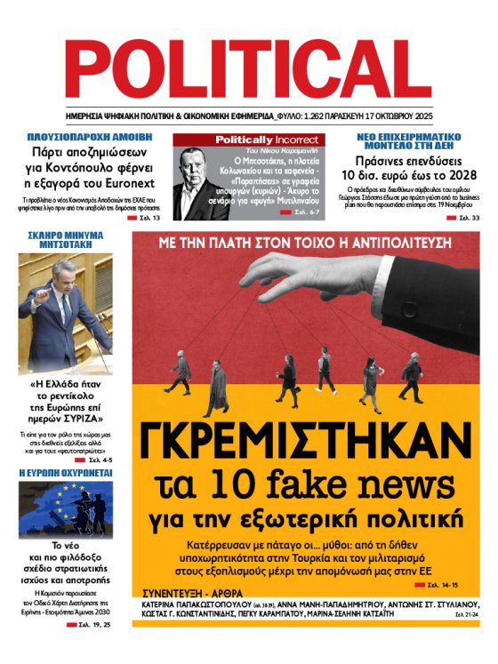 ΕφημερίδαPolitical 05.01.225 Ιανουαρίου, 2022 Total 0 Shares Share 0 Tweet 0 Share 0 Share 0 Share 0 Share 0 Share 0 Share 0 Πατήστε το εικονίδιο και διαβάστε την εφημερίδα σε μορφή PDF Total 0 Shares Share 0 Tweet 0 Pin it 0 Προηγούμενο άρθρο Εφημερίδα Political 04.01.22 4 Ιανουαρίου, 2022 Δείτε περισσότερα Επόμενο άρθρο Εφημερίδα Political 06.01.22 6 Ιανουαρίου, 2022 Δείτε περισσότερα Εγγραφή ΕΓΓΡΑΦΕΙΤΕ ΣΤΟ NEWSLETTER ΜΑΣ Subscribe ΕΠΙΛΕΓΟΝΤΑΣ ΑΥΤΟ ΤΟ ΠΛΑΙΣΙΟ, ΕΠΙΒΕΒΑΙΩΝΕΤΕ ΟΤΙ ΕΧΕΤΕ ΔΙΑΒΑΣΕΙ ΚΑΙ ΑΠΟΔΕΧΕΣΤΕ ΤΟΥΣ ΟΡΟΥΣ ΧΡΗΣΗΣ ΜΑΣ ΣΧΕΤΙΚΑ ΜΕ ΤΗΝ ΑΠΟΘΗΚΕΥΣΗ ΤΩΝ ΔΕΔΟΜΕΝΩΝ ΠΟΥ ΥΠΟΒΑΛΛΟΝΤΑΙ ΜΕΣΩ ΑΥΤΗΣ ΤΗΣ ΦΟΡΜΑΣ. Σύμφωνα με τον Κανονισμό ΕΕ 2016/679 του Ευρωπαϊκού Κοινοβουλίου {Γενικός Κανονισμός Προστασίας Προσωπικών Δεδομένων (GDPR)} που έχει τεθεί σε ισχύ από τις 25 Μαΐου 2018, και του Ν.4624/2019 που έχει τεθεί σε ισχύ από 29/8/2019, απαιτείται η συγκατάθεσή σας για να μετέχετε στην επικοινωνία με την παρούσα διεύθυνση ηλεκτρονικού ταχυδρομείου ή το κινητό σας τηλέφωνο. Σε περίπτωση που δεν επιθυμείτε να λαμβάνετε μηνύματα και ενημερώσεις από την παρούσα ηλεκτρονική διεύθυνση ή/και δεν επιθυμείτε να τηρούμε αρχείο της διεύθυνσης ηλεκτρονικού ταχυδρομείου ή και του αριθμού του κινητού σας τηλεφώνου, μπορείτε να ασκήσετε τα δικαιώματά σας βάσει του άρθρου 13,παρ.2, του Κανονισμού ΕΕ 2016/679 και να διαγραφείτε κάνοντας κλικ στο link που ακολουθεί. Σας ενημερώνουμε επίσης ότι η διεύθυνση ηλεκτρονικού σας ταχυδρομείου ή το κινητό σας τηλέφωνο, παραμένουν απόρρητα και δεν γνωστοποιούνται σε τρίτους. Εάν λάβατε το μήνυμα αυτό κατά λάθος, παρακαλούμε δεχθείτε τις απολογίες μας για την ενόχληση. Δείτε επίσης... Δείτε περισσότερα Political 17.10.25 17 Οκτωβρίου, 2025 Δείτε περισσότερα Political 16.10.25 16 Οκτωβρίου, 2025 Δείτε περισσότερα Political 15.10.25 15 Οκτωβρίου, 2025 Δείτε περισσότερα Political 14.10.25 14 Οκτωβρίου, 2025 Δείτε περισσότερα Political 11.10.25 11 Οκτωβρίου, 2025 Δείτε περισσότερα Political 10.10.25 10 Οκτωβρίου, 2025 Δείτε περισσότερα Political 09.10.25 9 Οκτωβρίου, 2025 Δείτε περισσότερα Political 08.10.25 8 Οκτωβρίου, 2025