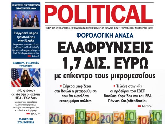ΕφημερίδαPolitical 08.11.258 Νοεμβρίου, 2025 Total 0 Shares Share 0 Tweet 0 Share 0 Share 0 Share 0 Share 0 Share 0 Share 0 Πατήστε το εικονίδιο και διαβάστε την εφημερίδα σε μορφή PDF Total 1 Shares Share 0 Tweet 0 Pin it 1 Προηγούμενο άρθρο Εφημερίδα Political 07.11.25 7 Νοεμβρίου, 2025 Δείτε περισσότερα Εγγραφή ΕΓΓΡΑΦΕΙΤΕ ΣΤΟ NEWSLETTER ΜΑΣ Subscribe ΕΠΙΛΕΓΟΝΤΑΣ ΑΥΤΟ ΤΟ ΠΛΑΙΣΙΟ, ΕΠΙΒΕΒΑΙΩΝΕΤΕ ΟΤΙ ΕΧΕΤΕ ΔΙΑΒΑΣΕΙ ΚΑΙ ΑΠΟΔΕΧΕΣΤΕ ΤΟΥΣ ΟΡΟΥΣ ΧΡΗΣΗΣ ΜΑΣ ΣΧΕΤΙΚΑ ΜΕ ΤΗΝ ΑΠΟΘΗΚΕΥΣΗ ΤΩΝ ΔΕΔΟΜΕΝΩΝ ΠΟΥ ΥΠΟΒΑΛΛΟΝΤΑΙ ΜΕΣΩ ΑΥΤΗΣ ΤΗΣ ΦΟΡΜΑΣ. Σύμφωνα με τον Κανονισμό ΕΕ 2016/679 του Ευρωπαϊκού Κοινοβουλίου {Γενικός Κανονισμός Προστασίας Προσωπικών Δεδομένων (GDPR)} που έχει τεθεί σε ισχύ από τις 25 Μαΐου 2018, και του Ν.4624/2019 που έχει τεθεί σε ισχύ από 29/8/2019, απαιτείται η συγκατάθεσή σας για να μετέχετε στην επικοινωνία με την παρούσα διεύθυνση ηλεκτρονικού ταχυδρομείου ή το κινητό σας τηλέφωνο. Σε περίπτωση που δεν επιθυμείτε να λαμβάνετε μηνύματα και ενημερώσεις από την παρούσα ηλεκτρονική διεύθυνση ή/και δεν επιθυμείτε να τηρούμε αρχείο της διεύθυνσης ηλεκτρονικού ταχυδρομείου ή και του αριθμού του κινητού σας τηλεφώνου, μπορείτε να ασκήσετε τα δικαιώματά σας βάσει του άρθρου 13,παρ.2, του Κανονισμού ΕΕ 2016/679 και να διαγραφείτε κάνοντας κλικ στο link που ακολουθεί. Σας ενημερώνουμε επίσης ότι η διεύθυνση ηλεκτρονικού σας ταχυδρομείου ή το κινητό σας τηλέφωνο, παραμένουν απόρρητα και δεν γνωστοποιούνται σε τρίτους. Εάν λάβατε το μήνυμα αυτό κατά λάθος, παρακαλούμε δεχθείτε τις απολογίες μας για την ενόχληση. Δείτε επίσης... Δείτε περισσότερα Political 07.11.25 7 Νοεμβρίου, 2025 Δείτε περισσότερα Political 06.11.25 6 Νοεμβρίου, 2025 Δείτε περισσότερα Political 05.11.25 5 Νοεμβρίου, 2025 Δείτε περισσότερα Political 04.11.25 4 Νοεμβρίου, 2025 Δείτε περισσότερα Political 03.11.25 3 Νοεμβρίου, 2025 Δείτε περισσότερα Political 01.11.25 1 Νοεμβρίου, 2025 Δείτε περισσότερα Political 31.10.25 31 Οκτωβρίου, 2025 Δείτε περισσότερα Political 30.10.25 30 Οκτωβρίου, 2025