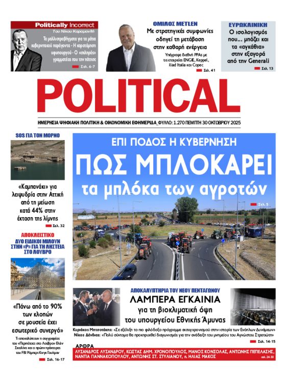 ΕφημερίδαPolitical 10.02.2410 Φεβρουαρίου, 2024 Total 0 Shares Share 0 Tweet 0 Share 0 Share 0 Share 0 Share 0 Share 0 Share 0 Πατήστε το εικονίδιο και διαβάστε την εφημερίδα σε μορφή PDF Total 0 Shares Share 0 Tweet 0 Pin it 1 Προηγούμενο άρθρο Εφημερίδα Political 09.02.24 9 Φεβρουαρίου, 2024 Δείτε περισσότερα Επόμενο άρθρο Εφημερίδα Political 13.02.24 13 Φεβρουαρίου, 2024 Δείτε περισσότερα Εγγραφή ΕΓΓΡΑΦΕΙΤΕ ΣΤΟ NEWSLETTER ΜΑΣ Subscribe ΕΠΙΛΕΓΟΝΤΑΣ ΑΥΤΟ ΤΟ ΠΛΑΙΣΙΟ, ΕΠΙΒΕΒΑΙΩΝΕΤΕ ΟΤΙ ΕΧΕΤΕ ΔΙΑΒΑΣΕΙ ΚΑΙ ΑΠΟΔΕΧΕΣΤΕ ΤΟΥΣ ΟΡΟΥΣ ΧΡΗΣΗΣ ΜΑΣ ΣΧΕΤΙΚΑ ΜΕ ΤΗΝ ΑΠΟΘΗΚΕΥΣΗ ΤΩΝ ΔΕΔΟΜΕΝΩΝ ΠΟΥ ΥΠΟΒΑΛΛΟΝΤΑΙ ΜΕΣΩ ΑΥΤΗΣ ΤΗΣ ΦΟΡΜΑΣ. Σύμφωνα με τον Κανονισμό ΕΕ 2016/679 του Ευρωπαϊκού Κοινοβουλίου {Γενικός Κανονισμός Προστασίας Προσωπικών Δεδομένων (GDPR)} που έχει τεθεί σε ισχύ από τις 25 Μαΐου 2018, και του Ν.4624/2019 που έχει τεθεί σε ισχύ από 29/8/2019, απαιτείται η συγκατάθεσή σας για να μετέχετε στην επικοινωνία με την παρούσα διεύθυνση ηλεκτρονικού ταχυδρομείου ή το κινητό σας τηλέφωνο. Σε περίπτωση που δεν επιθυμείτε να λαμβάνετε μηνύματα και ενημερώσεις από την παρούσα ηλεκτρονική διεύθυνση ή/και δεν επιθυμείτε να τηρούμε αρχείο της διεύθυνσης ηλεκτρονικού ταχυδρομείου ή και του αριθμού του κινητού σας τηλεφώνου, μπορείτε να ασκήσετε τα δικαιώματά σας βάσει του άρθρου 13,παρ.2, του Κανονισμού ΕΕ 2016/679 και να διαγραφείτε κάνοντας κλικ στο link που ακολουθεί. Σας ενημερώνουμε επίσης ότι η διεύθυνση ηλεκτρονικού σας ταχυδρομείου ή το κινητό σας τηλέφωνο, παραμένουν απόρρητα και δεν γνωστοποιούνται σε τρίτους. Εάν λάβατε το μήνυμα αυτό κατά λάθος, παρακαλούμε δεχθείτε τις απολογίες μας για την ενόχληση. Δείτε επίσης... Δείτε περισσότερα Political 30.10.25 30 Οκτωβρίου, 2025 Δείτε περισσότερα Political 29.10.25 29 Οκτωβρίου, 2025 Δείτε περισσότερα Political 25.10.25 25 Οκτωβρίου, 2025 Δείτε περισσότερα Political 24.10.25 24 Οκτωβρίου, 2025 Δείτε περισσότερα Political 23.10.25 23 Οκτωβρίου, 2025 Δείτε περισσότερα Political 22.10.25 22 Οκτωβρίου, 2025 Δείτε περισσότερα Political 21.10.25 21 Οκτωβρίου, 2025 Δείτε περισσότερα Political 18.10.25 18 Οκτωβρίου, 2025