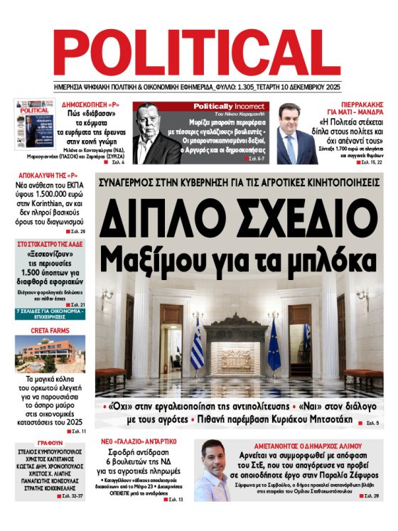 ΕφημερίδαPolitical 10.05.2210 Μαΐου, 2022 Total 0 Shares Share 0 Tweet 0 Share 0 Share 0 Share 0 Share 0 Share 0 Share 0 Πατήστε το εικονίδιο και διαβάστε την εφημερίδα σε μορφή PDF Total 0 Shares Share 0 Tweet 0 Pin it 0 Προηγούμενο άρθρο Εφημερίδα Political 07.05.22 7 Μαΐου, 2022 Δείτε περισσότερα Επόμενο άρθρο Εφημερίδα Political 11.05.22 11 Μαΐου, 2022 Δείτε περισσότερα Εγγραφή ΕΓΓΡΑΦΕΙΤΕ ΣΤΟ NEWSLETTER ΜΑΣ Subscribe ΕΠΙΛΕΓΟΝΤΑΣ ΑΥΤΟ ΤΟ ΠΛΑΙΣΙΟ, ΕΠΙΒΕΒΑΙΩΝΕΤΕ ΟΤΙ ΕΧΕΤΕ ΔΙΑΒΑΣΕΙ ΚΑΙ ΑΠΟΔΕΧΕΣΤΕ ΤΟΥΣ ΟΡΟΥΣ ΧΡΗΣΗΣ ΜΑΣ ΣΧΕΤΙΚΑ ΜΕ ΤΗΝ ΑΠΟΘΗΚΕΥΣΗ ΤΩΝ ΔΕΔΟΜΕΝΩΝ ΠΟΥ ΥΠΟΒΑΛΛΟΝΤΑΙ ΜΕΣΩ ΑΥΤΗΣ ΤΗΣ ΦΟΡΜΑΣ. Σύμφωνα με τον Κανονισμό ΕΕ 2016/679 του Ευρωπαϊκού Κοινοβουλίου {Γενικός Κανονισμός Προστασίας Προσωπικών Δεδομένων (GDPR)} που έχει τεθεί σε ισχύ από τις 25 Μαΐου 2018, και του Ν.4624/2019 που έχει τεθεί σε ισχύ από 29/8/2019, απαιτείται η συγκατάθεσή σας για να μετέχετε στην επικοινωνία με την παρούσα διεύθυνση ηλεκτρονικού ταχυδρομείου ή το κινητό σας τηλέφωνο. Σε περίπτωση που δεν επιθυμείτε να λαμβάνετε μηνύματα και ενημερώσεις από την παρούσα ηλεκτρονική διεύθυνση ή/και δεν επιθυμείτε να τηρούμε αρχείο της διεύθυνσης ηλεκτρονικού ταχυδρομείου ή και του αριθμού του κινητού σας τηλεφώνου, μπορείτε να ασκήσετε τα δικαιώματά σας βάσει του άρθρου 13,παρ.2, του Κανονισμού ΕΕ 2016/679 και να διαγραφείτε κάνοντας κλικ στο link που ακολουθεί. Σας ενημερώνουμε επίσης ότι η διεύθυνση ηλεκτρονικού σας ταχυδρομείου ή το κινητό σας τηλέφωνο, παραμένουν απόρρητα και δεν γνωστοποιούνται σε τρίτους. Εάν λάβατε το μήνυμα αυτό κατά λάθος, παρακαλούμε δεχθείτε τις απολογίες μας για την ενόχληση. Δείτε επίσης... Δείτε περισσότερα Political 09.12.25 9 Δεκεμβρίου, 2025 Δείτε περισσότερα Political 08.12.25 8 Δεκεμβρίου, 2025 Δείτε περισσότερα Political 06.12.25 6 Δεκεμβρίου, 2025 Δείτε περισσότερα Political 05.12.25 5 Δεκεμβρίου, 2025 Δείτε περισσότερα Political 04.12.25 4 Δεκεμβρίου, 2025 Δείτε περισσότερα Political 03.12.25 3 Δεκεμβρίου, 2025 Δείτε περισσότερα Political 02.12.25 2 Δεκεμβρίου, 2025 Δείτε περισσότερα Political 01.12.25 1 Δεκεμβρίου, 2025