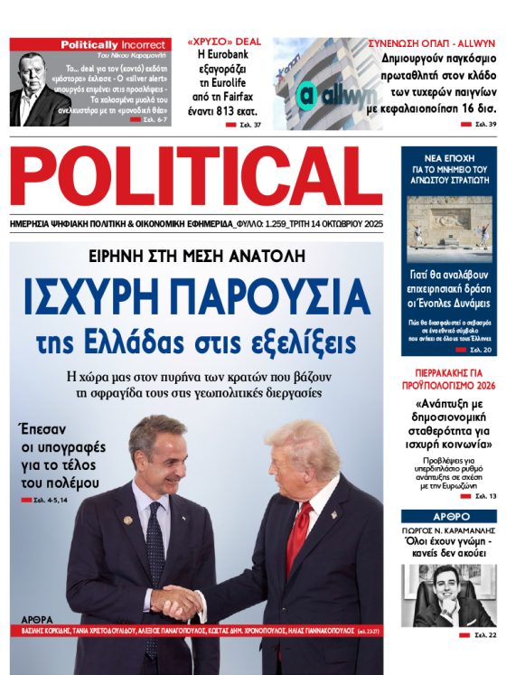 ΕφημερίδαPolitical 10.11.2110 Νοεμβρίου, 2021 Total 0 Shares Share 0 Tweet 0 Share 0 Share 0 Share 0 Share 0 Share 0 Share 0 Πατήστε το εικονίδιο και διαβάστε την εφημερίδα σε μορφή PDF Total 0 Shares Share 0 Tweet 0 Pin it 0 Προηγούμενο άρθρο Εφημερίδα Political 09.11.21 9 Νοεμβρίου, 2021 Δείτε περισσότερα Επόμενο άρθρο Εφημερίδα Political 11.11.21 11 Νοεμβρίου, 2021 Δείτε περισσότερα Εγγραφή ΕΓΓΡΑΦΕΙΤΕ ΣΤΟ NEWSLETTER ΜΑΣ Subscribe ΕΠΙΛΕΓΟΝΤΑΣ ΑΥΤΟ ΤΟ ΠΛΑΙΣΙΟ, ΕΠΙΒΕΒΑΙΩΝΕΤΕ ΟΤΙ ΕΧΕΤΕ ΔΙΑΒΑΣΕΙ ΚΑΙ ΑΠΟΔΕΧΕΣΤΕ ΤΟΥΣ ΟΡΟΥΣ ΧΡΗΣΗΣ ΜΑΣ ΣΧΕΤΙΚΑ ΜΕ ΤΗΝ ΑΠΟΘΗΚΕΥΣΗ ΤΩΝ ΔΕΔΟΜΕΝΩΝ ΠΟΥ ΥΠΟΒΑΛΛΟΝΤΑΙ ΜΕΣΩ ΑΥΤΗΣ ΤΗΣ ΦΟΡΜΑΣ. Σύμφωνα με τον Κανονισμό ΕΕ 2016/679 του Ευρωπαϊκού Κοινοβουλίου {Γενικός Κανονισμός Προστασίας Προσωπικών Δεδομένων (GDPR)} που έχει τεθεί σε ισχύ από τις 25 Μαΐου 2018, και του Ν.4624/2019 που έχει τεθεί σε ισχύ από 29/8/2019, απαιτείται η συγκατάθεσή σας για να μετέχετε στην επικοινωνία με την παρούσα διεύθυνση ηλεκτρονικού ταχυδρομείου ή το κινητό σας τηλέφωνο. Σε περίπτωση που δεν επιθυμείτε να λαμβάνετε μηνύματα και ενημερώσεις από την παρούσα ηλεκτρονική διεύθυνση ή/και δεν επιθυμείτε να τηρούμε αρχείο της διεύθυνσης ηλεκτρονικού ταχυδρομείου ή και του αριθμού του κινητού σας τηλεφώνου, μπορείτε να ασκήσετε τα δικαιώματά σας βάσει του άρθρου 13,παρ.2, του Κανονισμού ΕΕ 2016/679 και να διαγραφείτε κάνοντας κλικ στο link που ακολουθεί. Σας ενημερώνουμε επίσης ότι η διεύθυνση ηλεκτρονικού σας ταχυδρομείου ή το κινητό σας τηλέφωνο, παραμένουν απόρρητα και δεν γνωστοποιούνται σε τρίτους. Εάν λάβατε το μήνυμα αυτό κατά λάθος, παρακαλούμε δεχθείτε τις απολογίες μας για την ενόχληση. Δείτε επίσης... Δείτε περισσότερα Political 14.10.25 14 Οκτωβρίου, 2025 Δείτε περισσότερα Political 11.10.25 11 Οκτωβρίου, 2025 Δείτε περισσότερα Political 10.10.25 10 Οκτωβρίου, 2025 Δείτε περισσότερα Political 09.10.25 9 Οκτωβρίου, 2025 Δείτε περισσότερα Political 08.10.25 8 Οκτωβρίου, 2025 Δείτε περισσότερα Political 07.10.25 7 Οκτωβρίου, 2025 Δείτε περισσότερα Political 04.10.25 4 Οκτωβρίου, 2025 Δείτε περισσότερα Political 03.10.25 3 Οκτωβρίου, 2025