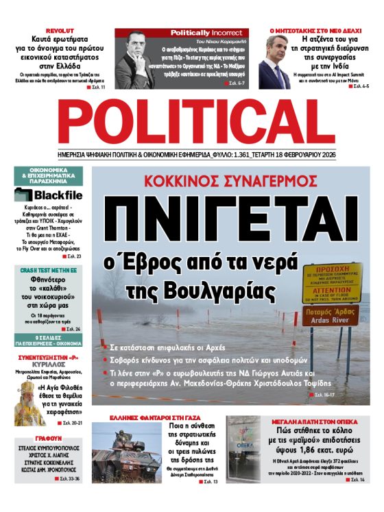 ΕφημερίδαPolitical 11.01.2511 Ιανουαρίου, 2025 Total 0 Shares Share 0 Tweet 0 Share 0 Share 0 Share 0 Share 0 Share 0 Share 0 Πατήστε το εικονίδιο και διαβάστε την εφημερίδα σε μορφή PDF Total 0 Shares Share 0 Tweet 0 Pin it 1 Προηγούμενο άρθρο Εφημερίδα Political 10.01.25 10 Ιανουαρίου, 2025 Δείτε περισσότερα Επόμενο άρθρο Εφημερίδα Political 14.01.25 14 Ιανουαρίου, 2025 Δείτε περισσότερα Εγγραφή ΕΓΓΡΑΦΕΙΤΕ ΣΤΟ NEWSLETTER ΜΑΣ Subscribe ΕΠΙΛΕΓΟΝΤΑΣ ΑΥΤΟ ΤΟ ΠΛΑΙΣΙΟ, ΕΠΙΒΕΒΑΙΩΝΕΤΕ ΟΤΙ ΕΧΕΤΕ ΔΙΑΒΑΣΕΙ ΚΑΙ ΑΠΟΔΕΧΕΣΤΕ ΤΟΥΣ ΟΡΟΥΣ ΧΡΗΣΗΣ ΜΑΣ ΣΧΕΤΙΚΑ ΜΕ ΤΗΝ ΑΠΟΘΗΚΕΥΣΗ ΤΩΝ ΔΕΔΟΜΕΝΩΝ ΠΟΥ ΥΠΟΒΑΛΛΟΝΤΑΙ ΜΕΣΩ ΑΥΤΗΣ ΤΗΣ ΦΟΡΜΑΣ. Σύμφωνα με τον Κανονισμό ΕΕ 2016/679 του Ευρωπαϊκού Κοινοβουλίου {Γενικός Κανονισμός Προστασίας Προσωπικών Δεδομένων (GDPR)} που έχει τεθεί σε ισχύ από τις 25 Μαΐου 2018, και του Ν.4624/2019 που έχει τεθεί σε ισχύ από 29/8/2019, απαιτείται η συγκατάθεσή σας για να μετέχετε στην επικοινωνία με την παρούσα διεύθυνση ηλεκτρονικού ταχυδρομείου ή το κινητό σας τηλέφωνο. Σε περίπτωση που δεν επιθυμείτε να λαμβάνετε μηνύματα και ενημερώσεις από την παρούσα ηλεκτρονική διεύθυνση ή/και δεν επιθυμείτε να τηρούμε αρχείο της διεύθυνσης ηλεκτρονικού ταχυδρομείου ή και του αριθμού του κινητού σας τηλεφώνου, μπορείτε να ασκήσετε τα δικαιώματά σας βάσει του άρθρου 13,παρ.2, του Κανονισμού ΕΕ 2016/679 και να διαγραφείτε κάνοντας κλικ στο link που ακολουθεί. Σας ενημερώνουμε επίσης ότι η διεύθυνση ηλεκτρονικού σας ταχυδρομείου ή το κινητό σας τηλέφωνο, παραμένουν απόρρητα και δεν γνωστοποιούνται σε τρίτους. Εάν λάβατε το μήνυμα αυτό κατά λάθος, παρακαλούμε δεχθείτε τις απολογίες μας για την ενόχληση. Δείτε επίσης... Δείτε περισσότερα Political 18.02.26 18 Φεβρουαρίου, 2026 Δείτε περισσότερα Political 17.02.26 17 Φεβρουαρίου, 2026 Δείτε περισσότερα Political 16.02.26 16 Φεβρουαρίου, 2026 Δείτε περισσότερα Political 14.02.26 14 Φεβρουαρίου, 2026 Δείτε περισσότερα Political 13.02.26 13 Φεβρουαρίου, 2026 Δείτε περισσότερα Political 12.02.26 12 Φεβρουαρίου, 2026 Δείτε περισσότερα Political 11.02.26 11 Φεβρουαρίου, 2026 Δείτε περισσότερα Political 10.02.26 10 Φεβρουαρίου, 2026