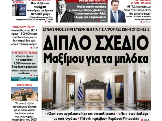 ΕφημερίδαPolitical 11.12.2511 Δεκεμβρίου, 2025 Total 0 Shares Share 0 Tweet 0 Share 0 Share 0 Share 0 Share 0 Share 0 Share 0 Πατήστε το εικονίδιο και διαβάστε την εφημερίδα σε μορφή PDF Total 1 Shares Share 0 Tweet 0 Pin it 1 Προηγούμενο άρθρο Εφημερίδα Political 10.12.25 10 Δεκεμβρίου, 2025 Δείτε περισσότερα Εγγραφή ΕΓΓΡΑΦΕΙΤΕ ΣΤΟ NEWSLETTER ΜΑΣ Subscribe ΕΠΙΛΕΓΟΝΤΑΣ ΑΥΤΟ ΤΟ ΠΛΑΙΣΙΟ, ΕΠΙΒΕΒΑΙΩΝΕΤΕ ΟΤΙ ΕΧΕΤΕ ΔΙΑΒΑΣΕΙ ΚΑΙ ΑΠΟΔΕΧΕΣΤΕ ΤΟΥΣ ΟΡΟΥΣ ΧΡΗΣΗΣ ΜΑΣ ΣΧΕΤΙΚΑ ΜΕ ΤΗΝ ΑΠΟΘΗΚΕΥΣΗ ΤΩΝ ΔΕΔΟΜΕΝΩΝ ΠΟΥ ΥΠΟΒΑΛΛΟΝΤΑΙ ΜΕΣΩ ΑΥΤΗΣ ΤΗΣ ΦΟΡΜΑΣ. Σύμφωνα με τον Κανονισμό ΕΕ 2016/679 του Ευρωπαϊκού Κοινοβουλίου {Γενικός Κανονισμός Προστασίας Προσωπικών Δεδομένων (GDPR)} που έχει τεθεί σε ισχύ από τις 25 Μαΐου 2018, και του Ν.4624/2019 που έχει τεθεί σε ισχύ από 29/8/2019, απαιτείται η συγκατάθεσή σας για να μετέχετε στην επικοινωνία με την παρούσα διεύθυνση ηλεκτρονικού ταχυδρομείου ή το κινητό σας τηλέφωνο. Σε περίπτωση που δεν επιθυμείτε να λαμβάνετε μηνύματα και ενημερώσεις από την παρούσα ηλεκτρονική διεύθυνση ή/και δεν επιθυμείτε να τηρούμε αρχείο της διεύθυνσης ηλεκτρονικού ταχυδρομείου ή και του αριθμού του κινητού σας τηλεφώνου, μπορείτε να ασκήσετε τα δικαιώματά σας βάσει του άρθρου 13,παρ.2, του Κανονισμού ΕΕ 2016/679 και να διαγραφείτε κάνοντας κλικ στο link που ακολουθεί. Σας ενημερώνουμε επίσης ότι η διεύθυνση ηλεκτρονικού σας ταχυδρομείου ή το κινητό σας τηλέφωνο, παραμένουν απόρρητα και δεν γνωστοποιούνται σε τρίτους. Εάν λάβατε το μήνυμα αυτό κατά λάθος, παρακαλούμε δεχθείτε τις απολογίες μας για την ενόχληση. Δείτε επίσης... Δείτε περισσότερα Political 10.12.25 10 Δεκεμβρίου, 2025 Δείτε περισσότερα Political 09.12.25 9 Δεκεμβρίου, 2025 Δείτε περισσότερα Political 08.12.25 8 Δεκεμβρίου, 2025 Δείτε περισσότερα Political 06.12.25 6 Δεκεμβρίου, 2025 Δείτε περισσότερα Political 05.12.25 5 Δεκεμβρίου, 2025 Δείτε περισσότερα Political 04.12.25 4 Δεκεμβρίου, 2025 Δείτε περισσότερα Political 03.12.25 3 Δεκεμβρίου, 2025 Δείτε περισσότερα Political 02.12.25 2 Δεκεμβρίου, 2025