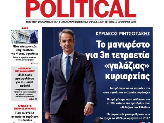 ΕφημερίδαPolitical 13.01.2613 Ιανουαρίου, 2026 Total 0 Shares Share 0 Tweet 0 Share 0 Share 0 Share 0 Share 0 Share 0 Share 0 Πατήστε το εικονίδιο και διαβάστε την εφημερίδα σε μορφή PDF Total 1 Shares Share 0 Tweet 0 Pin it 1 Προηγούμενο άρθρο Εφημερίδα Political 12.01.26 12 Ιανουαρίου, 2026 Δείτε περισσότερα Εγγραφή ΕΓΓΡΑΦΕΙΤΕ ΣΤΟ NEWSLETTER ΜΑΣ Subscribe ΕΠΙΛΕΓΟΝΤΑΣ ΑΥΤΟ ΤΟ ΠΛΑΙΣΙΟ, ΕΠΙΒΕΒΑΙΩΝΕΤΕ ΟΤΙ ΕΧΕΤΕ ΔΙΑΒΑΣΕΙ ΚΑΙ ΑΠΟΔΕΧΕΣΤΕ ΤΟΥΣ ΟΡΟΥΣ ΧΡΗΣΗΣ ΜΑΣ ΣΧΕΤΙΚΑ ΜΕ ΤΗΝ ΑΠΟΘΗΚΕΥΣΗ ΤΩΝ ΔΕΔΟΜΕΝΩΝ ΠΟΥ ΥΠΟΒΑΛΛΟΝΤΑΙ ΜΕΣΩ ΑΥΤΗΣ ΤΗΣ ΦΟΡΜΑΣ. Σύμφωνα με τον Κανονισμό ΕΕ 2016/679 του Ευρωπαϊκού Κοινοβουλίου {Γενικός Κανονισμός Προστασίας Προσωπικών Δεδομένων (GDPR)} που έχει τεθεί σε ισχύ από τις 25 Μαΐου 2018, και του Ν.4624/2019 που έχει τεθεί σε ισχύ από 29/8/2019, απαιτείται η συγκατάθεσή σας για να μετέχετε στην επικοινωνία με την παρούσα διεύθυνση ηλεκτρονικού ταχυδρομείου ή το κινητό σας τηλέφωνο. Σε περίπτωση που δεν επιθυμείτε να λαμβάνετε μηνύματα και ενημερώσεις από την παρούσα ηλεκτρονική διεύθυνση ή/και δεν επιθυμείτε να τηρούμε αρχείο της διεύθυνσης ηλεκτρονικού ταχυδρομείου ή και του αριθμού του κινητού σας τηλεφώνου, μπορείτε να ασκήσετε τα δικαιώματά σας βάσει του άρθρου 13,παρ.2, του Κανονισμού ΕΕ 2016/679 και να διαγραφείτε κάνοντας κλικ στο link που ακολουθεί. Σας ενημερώνουμε επίσης ότι η διεύθυνση ηλεκτρονικού σας ταχυδρομείου ή το κινητό σας τηλέφωνο, παραμένουν απόρρητα και δεν γνωστοποιούνται σε τρίτους. Εάν λάβατε το μήνυμα αυτό κατά λάθος, παρακαλούμε δεχθείτε τις απολογίες μας για την ενόχληση. Δείτε επίσης... Δείτε περισσότερα Political 12.01.26 12 Ιανουαρίου, 2026 Δείτε περισσότερα Political 10.01.26 10 Ιανουαρίου, 2026 Δείτε περισσότερα Political 09.01.26 9 Ιανουαρίου, 2026 Δείτε περισσότερα Political 08.01.26 8 Ιανουαρίου, 2026 Δείτε περισσότερα Political 07.01.26 7 Ιανουαρίου, 2026 Δείτε περισσότερα Political 05.01.26 5 Ιανουαρίου, 2026 Δείτε περισσότερα Political 03.01.26 3 Ιανουαρίου, 2026 Δείτε περισσότερα Political 02.01.26 2 Ιανουαρίου, 2026