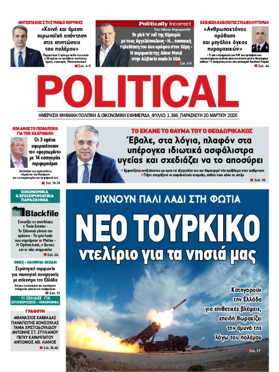 ΕφημερίδαPolitical 14.09.2214 Σεπτεμβρίου, 2022 Total 0 Shares Share 0 Tweet 0 Share 0 Share 0 Share 0 Share 0 Share 0 Share 0 Πατήστε το εικονίδιο και διαβάστε την εφημερίδα σε μορφή PDF Total 0 Shares Share 0 Tweet 0 Pin it 0 Προηγούμενο άρθρο Εφημερίδα Political 13.09.22 13 Σεπτεμβρίου, 2022 Δείτε περισσότερα Επόμενο άρθρο Εφημερίδα Political 15.09.22 15 Σεπτεμβρίου, 2022 Δείτε περισσότερα Εγγραφή ΕΓΓΡΑΦΕΙΤΕ ΣΤΟ NEWSLETTER ΜΑΣ Subscribe ΕΠΙΛΕΓΟΝΤΑΣ ΑΥΤΟ ΤΟ ΠΛΑΙΣΙΟ, ΕΠΙΒΕΒΑΙΩΝΕΤΕ ΟΤΙ ΕΧΕΤΕ ΔΙΑΒΑΣΕΙ ΚΑΙ ΑΠΟΔΕΧΕΣΤΕ ΤΟΥΣ ΟΡΟΥΣ ΧΡΗΣΗΣ ΜΑΣ ΣΧΕΤΙΚΑ ΜΕ ΤΗΝ ΑΠΟΘΗΚΕΥΣΗ ΤΩΝ ΔΕΔΟΜΕΝΩΝ ΠΟΥ ΥΠΟΒΑΛΛΟΝΤΑΙ ΜΕΣΩ ΑΥΤΗΣ ΤΗΣ ΦΟΡΜΑΣ. Σύμφωνα με τον Κανονισμό ΕΕ 2016/679 του Ευρωπαϊκού Κοινοβουλίου {Γενικός Κανονισμός Προστασίας Προσωπικών Δεδομένων (GDPR)} που έχει τεθεί σε ισχύ από τις 25 Μαΐου 2018, και του Ν.4624/2019 που έχει τεθεί σε ισχύ από 29/8/2019, απαιτείται η συγκατάθεσή σας για να μετέχετε στην επικοινωνία με την παρούσα διεύθυνση ηλεκτρονικού ταχυδρομείου ή το κινητό σας τηλέφωνο. Σε περίπτωση που δεν επιθυμείτε να λαμβάνετε μηνύματα και ενημερώσεις από την παρούσα ηλεκτρονική διεύθυνση ή/και δεν επιθυμείτε να τηρούμε αρχείο της διεύθυνσης ηλεκτρονικού ταχυδρομείου ή και του αριθμού του κινητού σας τηλεφώνου, μπορείτε να ασκήσετε τα δικαιώματά σας βάσει του άρθρου 13,παρ.2, του Κανονισμού ΕΕ 2016/679 και να διαγραφείτε κάνοντας κλικ στο link που ακολουθεί. Σας ενημερώνουμε επίσης ότι η διεύθυνση ηλεκτρονικού σας ταχυδρομείου ή το κινητό σας τηλέφωνο, παραμένουν απόρρητα και δεν γνωστοποιούνται σε τρίτους. Εάν λάβατε το μήνυμα αυτό κατά λάθος, παρακαλούμε δεχθείτε τις απολογίες μας για την ενόχληση. Δείτε επίσης... Δείτε περισσότερα Political 16.02.26 16 Φεβρουαρίου, 2026 Δείτε περισσότερα Political 14.02.26 14 Φεβρουαρίου, 2026 Δείτε περισσότερα Political 13.02.26 13 Φεβρουαρίου, 2026 Δείτε περισσότερα Political 12.02.26 12 Φεβρουαρίου, 2026 Δείτε περισσότερα Political 11.02.26 11 Φεβρουαρίου, 2026 Δείτε περισσότερα Political 10.02.26 10 Φεβρουαρίου, 2026 Δείτε περισσότερα Political 09.02.26 9 Φεβρουαρίου, 2026 Δείτε περισσότερα Political 07.02.26 7 Φεβρουαρίου, 2026