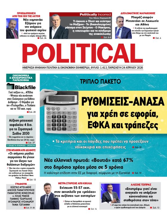 ΕφημερίδαPolitical 15.03.2415 Μαρτίου, 2024 Total 0 Shares Share 0 Tweet 0 Share 0 Share 0 Share 0 Share 0 Share 0 Share 0 Πατήστε το εικονίδιο και διαβάστε την εφημερίδα σε μορφή PDF Total 1 Shares Share 0 Tweet 0 Pin it 1 Προηγούμενο άρθρο Εφημερίδα Political 14.03.24 14 Μαρτίου, 2024 Δείτε περισσότερα Επόμενο άρθρο Εφημερίδα Political 16.03.24 16 Μαρτίου, 2024 Δείτε περισσότερα Εγγραφή ΕΓΓΡΑΦΕΙΤΕ ΣΤΟ NEWSLETTER ΜΑΣ Subscribe ΕΠΙΛΕΓΟΝΤΑΣ ΑΥΤΟ ΤΟ ΠΛΑΙΣΙΟ, ΕΠΙΒΕΒΑΙΩΝΕΤΕ ΟΤΙ ΕΧΕΤΕ ΔΙΑΒΑΣΕΙ ΚΑΙ ΑΠΟΔΕΧΕΣΤΕ ΤΟΥΣ ΟΡΟΥΣ ΧΡΗΣΗΣ ΜΑΣ ΣΧΕΤΙΚΑ ΜΕ ΤΗΝ ΑΠΟΘΗΚΕΥΣΗ ΤΩΝ ΔΕΔΟΜΕΝΩΝ ΠΟΥ ΥΠΟΒΑΛΛΟΝΤΑΙ ΜΕΣΩ ΑΥΤΗΣ ΤΗΣ ΦΟΡΜΑΣ. Σύμφωνα με τον Κανονισμό ΕΕ 2016/679 του Ευρωπαϊκού Κοινοβουλίου {Γενικός Κανονισμός Προστασίας Προσωπικών Δεδομένων (GDPR)} που έχει τεθεί σε ισχύ από τις 25 Μαΐου 2018, και του Ν.4624/2019 που έχει τεθεί σε ισχύ από 29/8/2019, απαιτείται η συγκατάθεσή σας για να μετέχετε στην επικοινωνία με την παρούσα διεύθυνση ηλεκτρονικού ταχυδρομείου ή το κινητό σας τηλέφωνο. Σε περίπτωση που δεν επιθυμείτε να λαμβάνετε μηνύματα και ενημερώσεις από την παρούσα ηλεκτρονική διεύθυνση ή/και δεν επιθυμείτε να τηρούμε αρχείο της διεύθυνσης ηλεκτρονικού ταχυδρομείου ή και του αριθμού του κινητού σας τηλεφώνου, μπορείτε να ασκήσετε τα δικαιώματά σας βάσει του άρθρου 13,παρ.2, του Κανονισμού ΕΕ 2016/679 και να διαγραφείτε κάνοντας κλικ στο link που ακολουθεί. Σας ενημερώνουμε επίσης ότι η διεύθυνση ηλεκτρονικού σας ταχυδρομείου ή το κινητό σας τηλέφωνο, παραμένουν απόρρητα και δεν γνωστοποιούνται σε τρίτους. Εάν λάβατε το μήνυμα αυτό κατά λάθος, παρακαλούμε δεχθείτε τις απολογίες μας για την ενόχληση. Δείτε επίσης... Δείτε περισσότερα Political 24.04.26 24 Απριλίου, 2026 Δείτε περισσότερα Political 23.04.26 23 Απριλίου, 2026 Δείτε περισσότερα Political 22.04.26 22 Απριλίου, 2026 Δείτε περισσότερα Political 21.04.26 21 Απριλίου, 2026 Δείτε περισσότερα Political 20.04.26 20 Απριλίου, 2026 Δείτε περισσότερα Political 18.04.26 18 Απριλίου, 2026 Δείτε περισσότερα Political 17.04.26 17 Απριλίου, 2026 Δείτε περισσότερα Political 16.04.26 16 Απριλίου, 2026