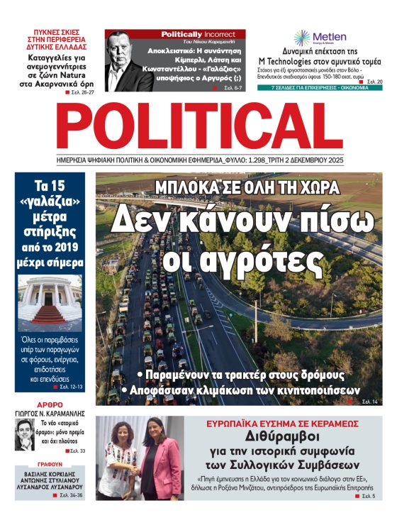 ΕφημερίδαPolitical 15.05.2415 Μαΐου, 2024 Total 0 Shares Share 0 Tweet 0 Share 0 Share 0 Share 0 Share 0 Share 0 Share 0 Πατήστε το εικονίδιο και διαβάστε την εφημερίδα σε μορφή PDF Total 0 Shares Share 0 Tweet 0 Pin it 1 Προηγούμενο άρθρο Εφημερίδα Political 14.05.24 14 Μαΐου, 2024 Δείτε περισσότερα Επόμενο άρθρο Εφημερίδα Political 16.05.24 16 Μαΐου, 2024 Δείτε περισσότερα Εγγραφή ΕΓΓΡΑΦΕΙΤΕ ΣΤΟ NEWSLETTER ΜΑΣ Subscribe ΕΠΙΛΕΓΟΝΤΑΣ ΑΥΤΟ ΤΟ ΠΛΑΙΣΙΟ, ΕΠΙΒΕΒΑΙΩΝΕΤΕ ΟΤΙ ΕΧΕΤΕ ΔΙΑΒΑΣΕΙ ΚΑΙ ΑΠΟΔΕΧΕΣΤΕ ΤΟΥΣ ΟΡΟΥΣ ΧΡΗΣΗΣ ΜΑΣ ΣΧΕΤΙΚΑ ΜΕ ΤΗΝ ΑΠΟΘΗΚΕΥΣΗ ΤΩΝ ΔΕΔΟΜΕΝΩΝ ΠΟΥ ΥΠΟΒΑΛΛΟΝΤΑΙ ΜΕΣΩ ΑΥΤΗΣ ΤΗΣ ΦΟΡΜΑΣ. Σύμφωνα με τον Κανονισμό ΕΕ 2016/679 του Ευρωπαϊκού Κοινοβουλίου {Γενικός Κανονισμός Προστασίας Προσωπικών Δεδομένων (GDPR)} που έχει τεθεί σε ισχύ από τις 25 Μαΐου 2018, και του Ν.4624/2019 που έχει τεθεί σε ισχύ από 29/8/2019, απαιτείται η συγκατάθεσή σας για να μετέχετε στην επικοινωνία με την παρούσα διεύθυνση ηλεκτρονικού ταχυδρομείου ή το κινητό σας τηλέφωνο. Σε περίπτωση που δεν επιθυμείτε να λαμβάνετε μηνύματα και ενημερώσεις από την παρούσα ηλεκτρονική διεύθυνση ή/και δεν επιθυμείτε να τηρούμε αρχείο της διεύθυνσης ηλεκτρονικού ταχυδρομείου ή και του αριθμού του κινητού σας τηλεφώνου, μπορείτε να ασκήσετε τα δικαιώματά σας βάσει του άρθρου 13,παρ.2, του Κανονισμού ΕΕ 2016/679 και να διαγραφείτε κάνοντας κλικ στο link που ακολουθεί. Σας ενημερώνουμε επίσης ότι η διεύθυνση ηλεκτρονικού σας ταχυδρομείου ή το κινητό σας τηλέφωνο, παραμένουν απόρρητα και δεν γνωστοποιούνται σε τρίτους. Εάν λάβατε το μήνυμα αυτό κατά λάθος, παρακαλούμε δεχθείτε τις απολογίες μας για την ενόχληση. Δείτε επίσης... Δείτε περισσότερα Political 02.12.25 2 Δεκεμβρίου, 2025 Δείτε περισσότερα Political 01.12.25 1 Δεκεμβρίου, 2025 Δείτε περισσότερα Political 29.11.25 29 Νοεμβρίου, 2025 Δείτε περισσότερα Political 28.11.25 28 Νοεμβρίου, 2025 Δείτε περισσότερα Political 27.11.25 27 Νοεμβρίου, 2025 Δείτε περισσότερα Political 26.11.25 26 Νοεμβρίου, 2025 Δείτε περισσότερα Political 25.11.25 25 Νοεμβρίου, 2025 Δείτε περισσότερα Political 24.11.25 24 Νοεμβρίου, 2025