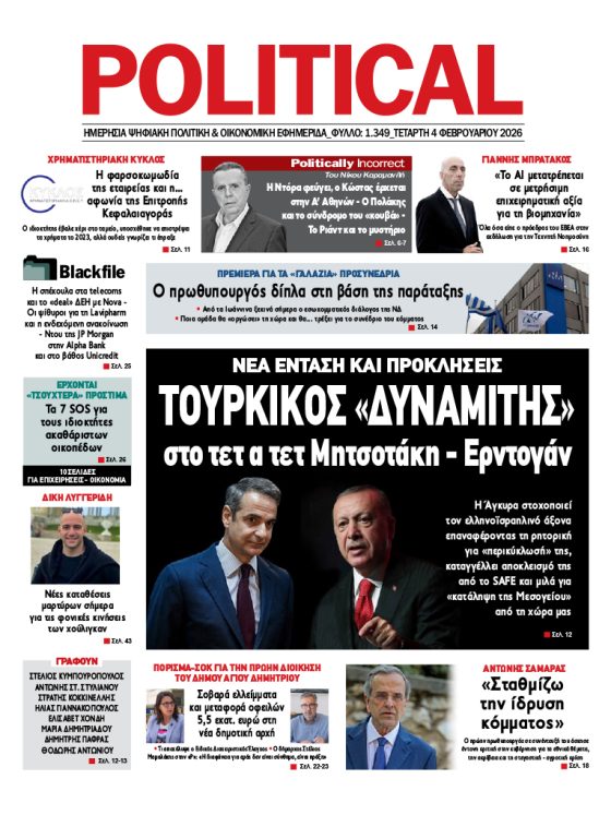 ΕφημερίδαPolitical 19.12.2519 Δεκεμβρίου, 2025 Total 0 Shares Share 0 Tweet 0 Share 0 Share 0 Share 0 Share 0 Share 0 Share 0 Πατήστε το εικονίδιο και διαβάστε την εφημερίδα σε μορφή PDF Total 1 Shares Share 0 Tweet 0 Pin it 1 Προηγούμενο άρθρο Εφημερίδα Political 18.12.25 18 Δεκεμβρίου, 2025 Δείτε περισσότερα Επόμενο άρθρο Εφημερίδα Political 20.12.25 20 Δεκεμβρίου, 2025 Δείτε περισσότερα Εγγραφή ΕΓΓΡΑΦΕΙΤΕ ΣΤΟ NEWSLETTER ΜΑΣ Subscribe ΕΠΙΛΕΓΟΝΤΑΣ ΑΥΤΟ ΤΟ ΠΛΑΙΣΙΟ, ΕΠΙΒΕΒΑΙΩΝΕΤΕ ΟΤΙ ΕΧΕΤΕ ΔΙΑΒΑΣΕΙ ΚΑΙ ΑΠΟΔΕΧΕΣΤΕ ΤΟΥΣ ΟΡΟΥΣ ΧΡΗΣΗΣ ΜΑΣ ΣΧΕΤΙΚΑ ΜΕ ΤΗΝ ΑΠΟΘΗΚΕΥΣΗ ΤΩΝ ΔΕΔΟΜΕΝΩΝ ΠΟΥ ΥΠΟΒΑΛΛΟΝΤΑΙ ΜΕΣΩ ΑΥΤΗΣ ΤΗΣ ΦΟΡΜΑΣ. Σύμφωνα με τον Κανονισμό ΕΕ 2016/679 του Ευρωπαϊκού Κοινοβουλίου {Γενικός Κανονισμός Προστασίας Προσωπικών Δεδομένων (GDPR)} που έχει τεθεί σε ισχύ από τις 25 Μαΐου 2018, και του Ν.4624/2019 που έχει τεθεί σε ισχύ από 29/8/2019, απαιτείται η συγκατάθεσή σας για να μετέχετε στην επικοινωνία με την παρούσα διεύθυνση ηλεκτρονικού ταχυδρομείου ή το κινητό σας τηλέφωνο. Σε περίπτωση που δεν επιθυμείτε να λαμβάνετε μηνύματα και ενημερώσεις από την παρούσα ηλεκτρονική διεύθυνση ή/και δεν επιθυμείτε να τηρούμε αρχείο της διεύθυνσης ηλεκτρονικού ταχυδρομείου ή και του αριθμού του κινητού σας τηλεφώνου, μπορείτε να ασκήσετε τα δικαιώματά σας βάσει του άρθρου 13,παρ.2, του Κανονισμού ΕΕ 2016/679 και να διαγραφείτε κάνοντας κλικ στο link που ακολουθεί. Σας ενημερώνουμε επίσης ότι η διεύθυνση ηλεκτρονικού σας ταχυδρομείου ή το κινητό σας τηλέφωνο, παραμένουν απόρρητα και δεν γνωστοποιούνται σε τρίτους. Εάν λάβατε το μήνυμα αυτό κατά λάθος, παρακαλούμε δεχθείτε τις απολογίες μας για την ενόχληση. Δείτε επίσης... Δείτε περισσότερα Political 04.02.26 4 Φεβρουαρίου, 2026 Δείτε περισσότερα Political 03.02.26 3 Φεβρουαρίου, 2026 Δείτε περισσότερα Political 02.02.26 2 Φεβρουαρίου, 2026 Δείτε περισσότερα Political 31.01.26 31 Ιανουαρίου, 2026 Δείτε περισσότερα Political 30.01.26 30 Ιανουαρίου, 2026 Δείτε περισσότερα Political 29.01.26 29 Ιανουαρίου, 2026 Δείτε περισσότερα Political 28.01.26 28 Ιανουαρίου, 2026 Δείτε περισσότερα Political 27.01.26 27 Ιανουαρίου, 2026