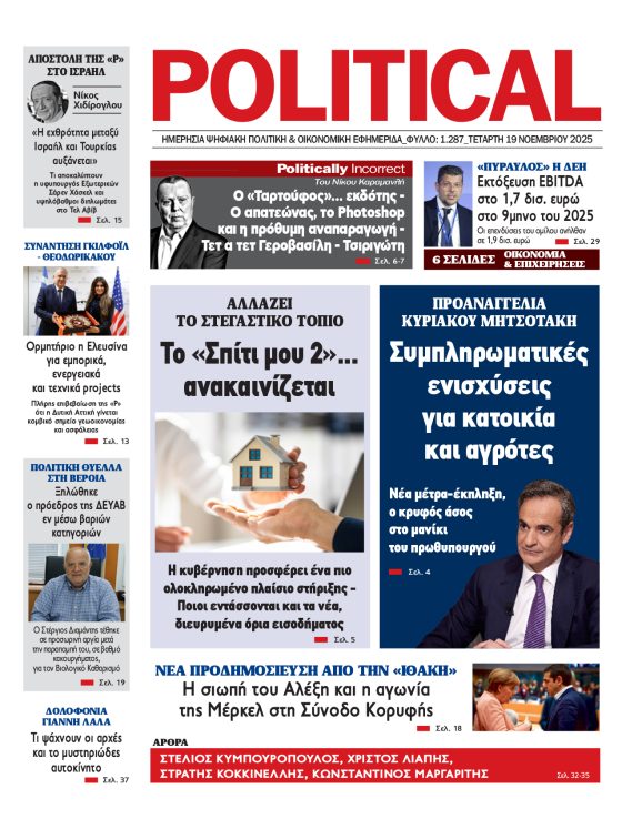 ΕφημερίδαPolitical 22.01.2522 Ιανουαρίου, 2025 Total 0 Shares Share 0 Tweet 0 Share 0 Share 0 Share 0 Share 0 Share 0 Share 0 Πατήστε το εικονίδιο και διαβάστε την εφημερίδα σε μορφή PDF Total 1 Shares Share 0 Tweet 0 Pin it 1 Προηγούμενο άρθρο Εφημερίδα Political 21.01.25 21 Ιανουαρίου, 2025 Δείτε περισσότερα Επόμενο άρθρο Εφημερίδα Political 23.01.25 23 Ιανουαρίου, 2025 Δείτε περισσότερα Εγγραφή ΕΓΓΡΑΦΕΙΤΕ ΣΤΟ NEWSLETTER ΜΑΣ Subscribe ΕΠΙΛΕΓΟΝΤΑΣ ΑΥΤΟ ΤΟ ΠΛΑΙΣΙΟ, ΕΠΙΒΕΒΑΙΩΝΕΤΕ ΟΤΙ ΕΧΕΤΕ ΔΙΑΒΑΣΕΙ ΚΑΙ ΑΠΟΔΕΧΕΣΤΕ ΤΟΥΣ ΟΡΟΥΣ ΧΡΗΣΗΣ ΜΑΣ ΣΧΕΤΙΚΑ ΜΕ ΤΗΝ ΑΠΟΘΗΚΕΥΣΗ ΤΩΝ ΔΕΔΟΜΕΝΩΝ ΠΟΥ ΥΠΟΒΑΛΛΟΝΤΑΙ ΜΕΣΩ ΑΥΤΗΣ ΤΗΣ ΦΟΡΜΑΣ. Σύμφωνα με τον Κανονισμό ΕΕ 2016/679 του Ευρωπαϊκού Κοινοβουλίου {Γενικός Κανονισμός Προστασίας Προσωπικών Δεδομένων (GDPR)} που έχει τεθεί σε ισχύ από τις 25 Μαΐου 2018, και του Ν.4624/2019 που έχει τεθεί σε ισχύ από 29/8/2019, απαιτείται η συγκατάθεσή σας για να μετέχετε στην επικοινωνία με την παρούσα διεύθυνση ηλεκτρονικού ταχυδρομείου ή το κινητό σας τηλέφωνο. Σε περίπτωση που δεν επιθυμείτε να λαμβάνετε μηνύματα και ενημερώσεις από την παρούσα ηλεκτρονική διεύθυνση ή/και δεν επιθυμείτε να τηρούμε αρχείο της διεύθυνσης ηλεκτρονικού ταχυδρομείου ή και του αριθμού του κινητού σας τηλεφώνου, μπορείτε να ασκήσετε τα δικαιώματά σας βάσει του άρθρου 13,παρ.2, του Κανονισμού ΕΕ 2016/679 και να διαγραφείτε κάνοντας κλικ στο link που ακολουθεί. Σας ενημερώνουμε επίσης ότι η διεύθυνση ηλεκτρονικού σας ταχυδρομείου ή το κινητό σας τηλέφωνο, παραμένουν απόρρητα και δεν γνωστοποιούνται σε τρίτους. Εάν λάβατε το μήνυμα αυτό κατά λάθος, παρακαλούμε δεχθείτε τις απολογίες μας για την ενόχληση. Δείτε επίσης... Δείτε περισσότερα Political 19.11.25 19 Νοεμβρίου, 2025 Δείτε περισσότερα Political 18.11.25 18 Νοεμβρίου, 2025 Δείτε περισσότερα Political 17.11.25 17 Νοεμβρίου, 2025 Δείτε περισσότερα Political 15.11.25 15 Νοεμβρίου, 2025 Δείτε περισσότερα Political 14.11.25 14 Νοεμβρίου, 2025 Δείτε περισσότερα Political 13.11.25 13 Νοεμβρίου, 2025 Δείτε περισσότερα Political 12.11.25 12 Νοεμβρίου, 2025 Δείτε περισσότερα Political 11.11.25 11 Νοεμβρίου, 2025