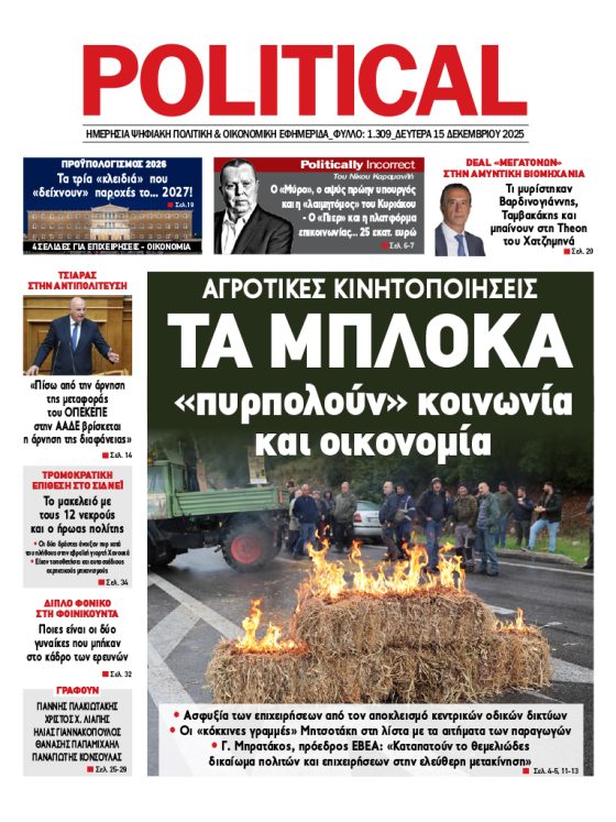 ΕφημερίδαPolitical 22.06.2322 Ιουνίου, 2023 Total 0 Shares Share 0 Tweet 0 Share 0 Share 0 Share 0 Share 0 Share 0 Share 0 Πατήστε το εικονίδιο και διαβάστε την εφημερίδα σε μορφή PDF Total 0 Shares Share 0 Tweet 0 Pin it 1 Προηγούμενο άρθρο Εφημερίδα Political 21.06.23 21 Ιουνίου, 2023 Δείτε περισσότερα Επόμενο άρθρο Εφημερίδα Political 23.06.23 23 Ιουνίου, 2023 Δείτε περισσότερα Εγγραφή ΕΓΓΡΑΦΕΙΤΕ ΣΤΟ NEWSLETTER ΜΑΣ Subscribe ΕΠΙΛΕΓΟΝΤΑΣ ΑΥΤΟ ΤΟ ΠΛΑΙΣΙΟ, ΕΠΙΒΕΒΑΙΩΝΕΤΕ ΟΤΙ ΕΧΕΤΕ ΔΙΑΒΑΣΕΙ ΚΑΙ ΑΠΟΔΕΧΕΣΤΕ ΤΟΥΣ ΟΡΟΥΣ ΧΡΗΣΗΣ ΜΑΣ ΣΧΕΤΙΚΑ ΜΕ ΤΗΝ ΑΠΟΘΗΚΕΥΣΗ ΤΩΝ ΔΕΔΟΜΕΝΩΝ ΠΟΥ ΥΠΟΒΑΛΛΟΝΤΑΙ ΜΕΣΩ ΑΥΤΗΣ ΤΗΣ ΦΟΡΜΑΣ. Σύμφωνα με τον Κανονισμό ΕΕ 2016/679 του Ευρωπαϊκού Κοινοβουλίου {Γενικός Κανονισμός Προστασίας Προσωπικών Δεδομένων (GDPR)} που έχει τεθεί σε ισχύ από τις 25 Μαΐου 2018, και του Ν.4624/2019 που έχει τεθεί σε ισχύ από 29/8/2019, απαιτείται η συγκατάθεσή σας για να μετέχετε στην επικοινωνία με την παρούσα διεύθυνση ηλεκτρονικού ταχυδρομείου ή το κινητό σας τηλέφωνο. Σε περίπτωση που δεν επιθυμείτε να λαμβάνετε μηνύματα και ενημερώσεις από την παρούσα ηλεκτρονική διεύθυνση ή/και δεν επιθυμείτε να τηρούμε αρχείο της διεύθυνσης ηλεκτρονικού ταχυδρομείου ή και του αριθμού του κινητού σας τηλεφώνου, μπορείτε να ασκήσετε τα δικαιώματά σας βάσει του άρθρου 13,παρ.2, του Κανονισμού ΕΕ 2016/679 και να διαγραφείτε κάνοντας κλικ στο link που ακολουθεί. Σας ενημερώνουμε επίσης ότι η διεύθυνση ηλεκτρονικού σας ταχυδρομείου ή το κινητό σας τηλέφωνο, παραμένουν απόρρητα και δεν γνωστοποιούνται σε τρίτους. Εάν λάβατε το μήνυμα αυτό κατά λάθος, παρακαλούμε δεχθείτε τις απολογίες μας για την ενόχληση. Δείτε επίσης... Δείτε περισσότερα Political 15.12.25 15 Δεκεμβρίου, 2025 Δείτε περισσότερα Political 13.12.25 13 Δεκεμβρίου, 2025 Δείτε περισσότερα Political 12.12.25 12 Δεκεμβρίου, 2025 Δείτε περισσότερα Political 11.12.25 11 Δεκεμβρίου, 2025 Δείτε περισσότερα Political 10.12.25 10 Δεκεμβρίου, 2025 Δείτε περισσότερα Political 09.12.25 9 Δεκεμβρίου, 2025 Δείτε περισσότερα Political 08.12.25 8 Δεκεμβρίου, 2025 Δείτε περισσότερα Political 06.12.25 6 Δεκεμβρίου, 2025