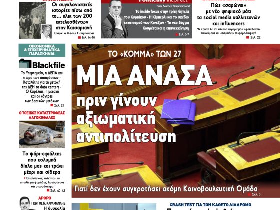 ΕφημερίδαPolitical 25.02.2625 Φεβρουαρίου, 2026 Total 0 Shares Share 0 Tweet 0 Share 0 Share 0 Share 0 Share 0 Share 0 Share 0 Πατήστε το εικονίδιο και διαβάστε την εφημερίδα σε μορφή PDF Total 1 Shares Share 0 Tweet 0 Pin it 1 Προηγούμενο άρθρο Εφημερίδα Political 24.02.26 24 Φεβρουαρίου, 2026 Δείτε περισσότερα Εγγραφή ΕΓΓΡΑΦΕΙΤΕ ΣΤΟ NEWSLETTER ΜΑΣ Subscribe ΕΠΙΛΕΓΟΝΤΑΣ ΑΥΤΟ ΤΟ ΠΛΑΙΣΙΟ, ΕΠΙΒΕΒΑΙΩΝΕΤΕ ΟΤΙ ΕΧΕΤΕ ΔΙΑΒΑΣΕΙ ΚΑΙ ΑΠΟΔΕΧΕΣΤΕ ΤΟΥΣ ΟΡΟΥΣ ΧΡΗΣΗΣ ΜΑΣ ΣΧΕΤΙΚΑ ΜΕ ΤΗΝ ΑΠΟΘΗΚΕΥΣΗ ΤΩΝ ΔΕΔΟΜΕΝΩΝ ΠΟΥ ΥΠΟΒΑΛΛΟΝΤΑΙ ΜΕΣΩ ΑΥΤΗΣ ΤΗΣ ΦΟΡΜΑΣ. Σύμφωνα με τον Κανονισμό ΕΕ 2016/679 του Ευρωπαϊκού Κοινοβουλίου {Γενικός Κανονισμός Προστασίας Προσωπικών Δεδομένων (GDPR)} που έχει τεθεί σε ισχύ από τις 25 Μαΐου 2018, και του Ν.4624/2019 που έχει τεθεί σε ισχύ από 29/8/2019, απαιτείται η συγκατάθεσή σας για να μετέχετε στην επικοινωνία με την παρούσα διεύθυνση ηλεκτρονικού ταχυδρομείου ή το κινητό σας τηλέφωνο. Σε περίπτωση που δεν επιθυμείτε να λαμβάνετε μηνύματα και ενημερώσεις από την παρούσα ηλεκτρονική διεύθυνση ή/και δεν επιθυμείτε να τηρούμε αρχείο της διεύθυνσης ηλεκτρονικού ταχυδρομείου ή και του αριθμού του κινητού σας τηλεφώνου, μπορείτε να ασκήσετε τα δικαιώματά σας βάσει του άρθρου 13,παρ.2, του Κανονισμού ΕΕ 2016/679 και να διαγραφείτε κάνοντας κλικ στο link που ακολουθεί. Σας ενημερώνουμε επίσης ότι η διεύθυνση ηλεκτρονικού σας ταχυδρομείου ή το κινητό σας τηλέφωνο, παραμένουν απόρρητα και δεν γνωστοποιούνται σε τρίτους. Εάν λάβατε το μήνυμα αυτό κατά λάθος, παρακαλούμε δεχθείτε τις απολογίες μας για την ενόχληση. Δείτε επίσης... Δείτε περισσότερα Political 24.02.26 24 Φεβρουαρίου, 2026 Δείτε περισσότερα Political 21.02.26 21 Φεβρουαρίου, 2026 Δείτε περισσότερα Political 20.02.26 20 Φεβρουαρίου, 2026 Δείτε περισσότερα Political 19.02.26 19 Φεβρουαρίου, 2026 Δείτε περισσότερα Political 18.02.26 18 Φεβρουαρίου, 2026 Δείτε περισσότερα Political 17.02.26 17 Φεβρουαρίου, 2026 Δείτε περισσότερα Political 16.02.26 16 Φεβρουαρίου, 2026 Δείτε περισσότερα Political 14.02.26 14 Φεβρουαρίου, 2026