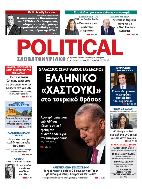 ΕφημερίδαPolitical 25.07.2425 Ιουλίου, 2024 Total 0 Shares Share 0 Tweet 0 Share 0 Share 0 Share 0 Share 0 Share 0 Share 0 Πατήστε το εικονίδιο και διαβάστε την εφημερίδα σε μορφή PDF Total 1 Shares Share 0 Tweet 0 Pin it 1 Προηγούμενο άρθρο Εφημερίδα Political 24.07.24 24 Ιουλίου, 2024 Δείτε περισσότερα Επόμενο άρθρο Εφημερίδα Political 26.07.24 26 Ιουλίου, 2024 Δείτε περισσότερα Εγγραφή ΕΓΓΡΑΦΕΙΤΕ ΣΤΟ NEWSLETTER ΜΑΣ Subscribe ΕΠΙΛΕΓΟΝΤΑΣ ΑΥΤΟ ΤΟ ΠΛΑΙΣΙΟ, ΕΠΙΒΕΒΑΙΩΝΕΤΕ ΟΤΙ ΕΧΕΤΕ ΔΙΑΒΑΣΕΙ ΚΑΙ ΑΠΟΔΕΧΕΣΤΕ ΤΟΥΣ ΟΡΟΥΣ ΧΡΗΣΗΣ ΜΑΣ ΣΧΕΤΙΚΑ ΜΕ ΤΗΝ ΑΠΟΘΗΚΕΥΣΗ ΤΩΝ ΔΕΔΟΜΕΝΩΝ ΠΟΥ ΥΠΟΒΑΛΛΟΝΤΑΙ ΜΕΣΩ ΑΥΤΗΣ ΤΗΣ ΦΟΡΜΑΣ. Σύμφωνα με τον Κανονισμό ΕΕ 2016/679 του Ευρωπαϊκού Κοινοβουλίου {Γενικός Κανονισμός Προστασίας Προσωπικών Δεδομένων (GDPR)} που έχει τεθεί σε ισχύ από τις 25 Μαΐου 2018, και του Ν.4624/2019 που έχει τεθεί σε ισχύ από 29/8/2019, απαιτείται η συγκατάθεσή σας για να μετέχετε στην επικοινωνία με την παρούσα διεύθυνση ηλεκτρονικού ταχυδρομείου ή το κινητό σας τηλέφωνο. Σε περίπτωση που δεν επιθυμείτε να λαμβάνετε μηνύματα και ενημερώσεις από την παρούσα ηλεκτρονική διεύθυνση ή/και δεν επιθυμείτε να τηρούμε αρχείο της διεύθυνσης ηλεκτρονικού ταχυδρομείου ή και του αριθμού του κινητού σας τηλεφώνου, μπορείτε να ασκήσετε τα δικαιώματά σας βάσει του άρθρου 13,παρ.2, του Κανονισμού ΕΕ 2016/679 και να διαγραφείτε κάνοντας κλικ στο link που ακολουθεί. Σας ενημερώνουμε επίσης ότι η διεύθυνση ηλεκτρονικού σας ταχυδρομείου ή το κινητό σας τηλέφωνο, παραμένουν απόρρητα και δεν γνωστοποιούνται σε τρίτους. Εάν λάβατε το μήνυμα αυτό κατά λάθος, παρακαλούμε δεχθείτε τις απολογίες μας για την ενόχληση. Δείτε επίσης... Δείτε περισσότερα Political 22.11.25 22 Νοεμβρίου, 2025 Δείτε περισσότερα Political 21.11.25 21 Νοεμβρίου, 2025 Δείτε περισσότερα Political 20.11.25 20 Νοεμβρίου, 2025 Δείτε περισσότερα Political 19.11.25 19 Νοεμβρίου, 2025 Δείτε περισσότερα Political 18.11.25 18 Νοεμβρίου, 2025 Δείτε περισσότερα Political 17.11.25 17 Νοεμβρίου, 2025 Δείτε περισσότερα Political 15.11.25 15 Νοεμβρίου, 2025 Δείτε περισσότερα Political 14.11.25 14 Νοεμβρίου, 2025