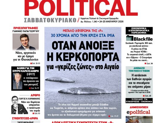 ΕφημερίδαPolitical 26.01.2626 Ιανουαρίου, 2026 Total 0 Shares Share 0 Tweet 0 Share 0 Share 0 Share 0 Share 0 Share 0 Share 0 Πατήστε το εικονίδιο και διαβάστε την εφημερίδα σε μορφή PDF Total 1 Shares Share 0 Tweet 0 Pin it 1 Προηγούμενο άρθρο Εφημερίδα Political 24.01.26 24 Ιανουαρίου, 2026 Δείτε περισσότερα Εγγραφή ΕΓΓΡΑΦΕΙΤΕ ΣΤΟ NEWSLETTER ΜΑΣ Subscribe ΕΠΙΛΕΓΟΝΤΑΣ ΑΥΤΟ ΤΟ ΠΛΑΙΣΙΟ, ΕΠΙΒΕΒΑΙΩΝΕΤΕ ΟΤΙ ΕΧΕΤΕ ΔΙΑΒΑΣΕΙ ΚΑΙ ΑΠΟΔΕΧΕΣΤΕ ΤΟΥΣ ΟΡΟΥΣ ΧΡΗΣΗΣ ΜΑΣ ΣΧΕΤΙΚΑ ΜΕ ΤΗΝ ΑΠΟΘΗΚΕΥΣΗ ΤΩΝ ΔΕΔΟΜΕΝΩΝ ΠΟΥ ΥΠΟΒΑΛΛΟΝΤΑΙ ΜΕΣΩ ΑΥΤΗΣ ΤΗΣ ΦΟΡΜΑΣ. Σύμφωνα με τον Κανονισμό ΕΕ 2016/679 του Ευρωπαϊκού Κοινοβουλίου {Γενικός Κανονισμός Προστασίας Προσωπικών Δεδομένων (GDPR)} που έχει τεθεί σε ισχύ από τις 25 Μαΐου 2018, και του Ν.4624/2019 που έχει τεθεί σε ισχύ από 29/8/2019, απαιτείται η συγκατάθεσή σας για να μετέχετε στην επικοινωνία με την παρούσα διεύθυνση ηλεκτρονικού ταχυδρομείου ή το κινητό σας τηλέφωνο. Σε περίπτωση που δεν επιθυμείτε να λαμβάνετε μηνύματα και ενημερώσεις από την παρούσα ηλεκτρονική διεύθυνση ή/και δεν επιθυμείτε να τηρούμε αρχείο της διεύθυνσης ηλεκτρονικού ταχυδρομείου ή και του αριθμού του κινητού σας τηλεφώνου, μπορείτε να ασκήσετε τα δικαιώματά σας βάσει του άρθρου 13,παρ.2, του Κανονισμού ΕΕ 2016/679 και να διαγραφείτε κάνοντας κλικ στο link που ακολουθεί. Σας ενημερώνουμε επίσης ότι η διεύθυνση ηλεκτρονικού σας ταχυδρομείου ή το κινητό σας τηλέφωνο, παραμένουν απόρρητα και δεν γνωστοποιούνται σε τρίτους. Εάν λάβατε το μήνυμα αυτό κατά λάθος, παρακαλούμε δεχθείτε τις απολογίες μας για την ενόχληση. Δείτε επίσης... Δείτε περισσότερα Political 24.01.26 24 Ιανουαρίου, 2026 Δείτε περισσότερα Political 23.01.26 23 Ιανουαρίου, 2026 Δείτε περισσότερα Political 22.01.26 22 Ιανουαρίου, 2026 Δείτε περισσότερα Political 21.01.26 21 Ιανουαρίου, 2026 Δείτε περισσότερα Political 20.01.26 20 Ιανουαρίου, 2026 Δείτε περισσότερα Political 19.01.26 19 Ιανουαρίου, 2026 Δείτε περισσότερα Political 17.01.26 17 Ιανουαρίου, 2026 Δείτε περισσότερα Political 16.01.26 16 Ιανουαρίου, 2026