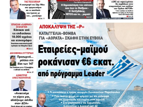 ΕφημερίδαPolitical 27.11.2527 Νοεμβρίου, 2025 Total 0 Shares Share 0 Tweet 0 Share 0 Share 0 Share 0 Share 0 Share 0 Share 0 Πατήστε το εικονίδιο και διαβάστε την εφημερίδα σε μορφή PDF Total 0 Shares Share 0 Tweet 0 Pin it 1 Προηγούμενο άρθρο Εφημερίδα Political 26.11.25 26 Νοεμβρίου, 2025 Δείτε περισσότερα Εγγραφή ΕΓΓΡΑΦΕΙΤΕ ΣΤΟ NEWSLETTER ΜΑΣ Subscribe ΕΠΙΛΕΓΟΝΤΑΣ ΑΥΤΟ ΤΟ ΠΛΑΙΣΙΟ, ΕΠΙΒΕΒΑΙΩΝΕΤΕ ΟΤΙ ΕΧΕΤΕ ΔΙΑΒΑΣΕΙ ΚΑΙ ΑΠΟΔΕΧΕΣΤΕ ΤΟΥΣ ΟΡΟΥΣ ΧΡΗΣΗΣ ΜΑΣ ΣΧΕΤΙΚΑ ΜΕ ΤΗΝ ΑΠΟΘΗΚΕΥΣΗ ΤΩΝ ΔΕΔΟΜΕΝΩΝ ΠΟΥ ΥΠΟΒΑΛΛΟΝΤΑΙ ΜΕΣΩ ΑΥΤΗΣ ΤΗΣ ΦΟΡΜΑΣ. Σύμφωνα με τον Κανονισμό ΕΕ 2016/679 του Ευρωπαϊκού Κοινοβουλίου {Γενικός Κανονισμός Προστασίας Προσωπικών Δεδομένων (GDPR)} που έχει τεθεί σε ισχύ από τις 25 Μαΐου 2018, και του Ν.4624/2019 που έχει τεθεί σε ισχύ από 29/8/2019, απαιτείται η συγκατάθεσή σας για να μετέχετε στην επικοινωνία με την παρούσα διεύθυνση ηλεκτρονικού ταχυδρομείου ή το κινητό σας τηλέφωνο. Σε περίπτωση που δεν επιθυμείτε να λαμβάνετε μηνύματα και ενημερώσεις από την παρούσα ηλεκτρονική διεύθυνση ή/και δεν επιθυμείτε να τηρούμε αρχείο της διεύθυνσης ηλεκτρονικού ταχυδρομείου ή και του αριθμού του κινητού σας τηλεφώνου, μπορείτε να ασκήσετε τα δικαιώματά σας βάσει του άρθρου 13,παρ.2, του Κανονισμού ΕΕ 2016/679 και να διαγραφείτε κάνοντας κλικ στο link που ακολουθεί. Σας ενημερώνουμε επίσης ότι η διεύθυνση ηλεκτρονικού σας ταχυδρομείου ή το κινητό σας τηλέφωνο, παραμένουν απόρρητα και δεν γνωστοποιούνται σε τρίτους. Εάν λάβατε το μήνυμα αυτό κατά λάθος, παρακαλούμε δεχθείτε τις απολογίες μας για την ενόχληση. Δείτε επίσης... Δείτε περισσότερα Political 26.11.25 26 Νοεμβρίου, 2025 Δείτε περισσότερα Political 25.11.25 25 Νοεμβρίου, 2025 Δείτε περισσότερα Political 24.11.25 24 Νοεμβρίου, 2025 Δείτε περισσότερα Political 22.11.25 22 Νοεμβρίου, 2025 Δείτε περισσότερα Political 21.11.25 21 Νοεμβρίου, 2025 Δείτε περισσότερα Political 20.11.25 20 Νοεμβρίου, 2025 Δείτε περισσότερα Political 19.11.25 19 Νοεμβρίου, 2025 Δείτε περισσότερα Political 18.11.25 18 Νοεμβρίου, 2025