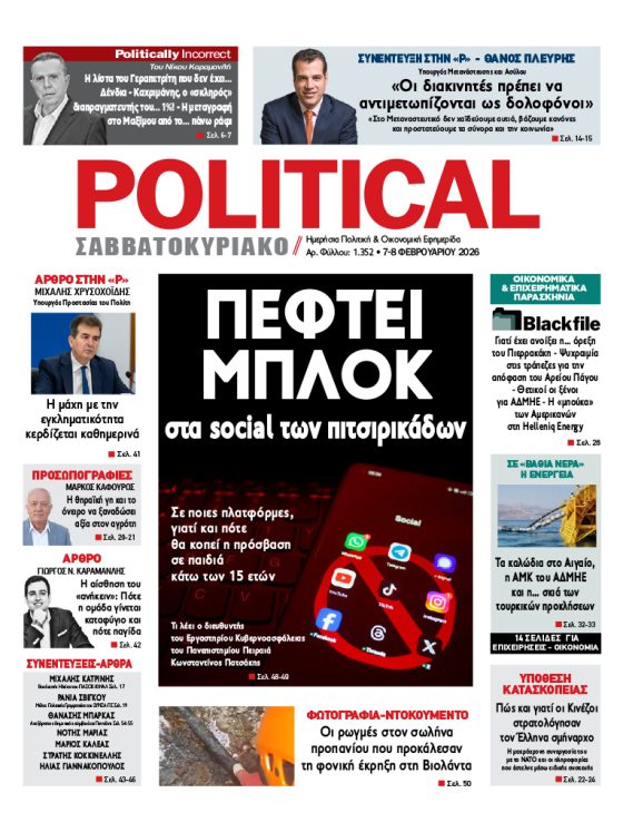 ΕφημερίδαPolitical 28.03.2328 Μαρτίου, 2023 Total 0 Shares Share 0 Tweet 0 Share 0 Share 0 Share 0 Share 0 Share 0 Share 0 Πατήστε το εικονίδιο και διαβάστε την εφημερίδα σε μορφή PDF Total 0 Shares Share 0 Tweet 0 Pin it 1 Προηγούμενο άρθρο Εφημερίδα Political 25.03.23 25 Μαρτίου, 2023 Δείτε περισσότερα Επόμενο άρθρο Εφημερίδα Political 29.03.23 29 Μαρτίου, 2023 Δείτε περισσότερα Εγγραφή ΕΓΓΡΑΦΕΙΤΕ ΣΤΟ NEWSLETTER ΜΑΣ Subscribe ΕΠΙΛΕΓΟΝΤΑΣ ΑΥΤΟ ΤΟ ΠΛΑΙΣΙΟ, ΕΠΙΒΕΒΑΙΩΝΕΤΕ ΟΤΙ ΕΧΕΤΕ ΔΙΑΒΑΣΕΙ ΚΑΙ ΑΠΟΔΕΧΕΣΤΕ ΤΟΥΣ ΟΡΟΥΣ ΧΡΗΣΗΣ ΜΑΣ ΣΧΕΤΙΚΑ ΜΕ ΤΗΝ ΑΠΟΘΗΚΕΥΣΗ ΤΩΝ ΔΕΔΟΜΕΝΩΝ ΠΟΥ ΥΠΟΒΑΛΛΟΝΤΑΙ ΜΕΣΩ ΑΥΤΗΣ ΤΗΣ ΦΟΡΜΑΣ. Σύμφωνα με τον Κανονισμό ΕΕ 2016/679 του Ευρωπαϊκού Κοινοβουλίου {Γενικός Κανονισμός Προστασίας Προσωπικών Δεδομένων (GDPR)} που έχει τεθεί σε ισχύ από τις 25 Μαΐου 2018, και του Ν.4624/2019 που έχει τεθεί σε ισχύ από 29/8/2019, απαιτείται η συγκατάθεσή σας για να μετέχετε στην επικοινωνία με την παρούσα διεύθυνση ηλεκτρονικού ταχυδρομείου ή το κινητό σας τηλέφωνο. Σε περίπτωση που δεν επιθυμείτε να λαμβάνετε μηνύματα και ενημερώσεις από την παρούσα ηλεκτρονική διεύθυνση ή/και δεν επιθυμείτε να τηρούμε αρχείο της διεύθυνσης ηλεκτρονικού ταχυδρομείου ή και του αριθμού του κινητού σας τηλεφώνου, μπορείτε να ασκήσετε τα δικαιώματά σας βάσει του άρθρου 13,παρ.2, του Κανονισμού ΕΕ 2016/679 και να διαγραφείτε κάνοντας κλικ στο link που ακολουθεί. Σας ενημερώνουμε επίσης ότι η διεύθυνση ηλεκτρονικού σας ταχυδρομείου ή το κινητό σας τηλέφωνο, παραμένουν απόρρητα και δεν γνωστοποιούνται σε τρίτους. Εάν λάβατε το μήνυμα αυτό κατά λάθος, παρακαλούμε δεχθείτε τις απολογίες μας για την ενόχληση. Δείτε επίσης... Δείτε περισσότερα Political 06.02.26 6 Φεβρουαρίου, 2026 Δείτε περισσότερα Political 05.02.26 5 Φεβρουαρίου, 2026 Δείτε περισσότερα Political 04.02.26 4 Φεβρουαρίου, 2026 Δείτε περισσότερα Political 03.02.26 3 Φεβρουαρίου, 2026 Δείτε περισσότερα Political 02.02.26 2 Φεβρουαρίου, 2026 Δείτε περισσότερα Political 31.01.26 31 Ιανουαρίου, 2026 Δείτε περισσότερα Political 30.01.26 30 Ιανουαρίου, 2026 Δείτε περισσότερα Political 29.01.26 29 Ιανουαρίου, 2026