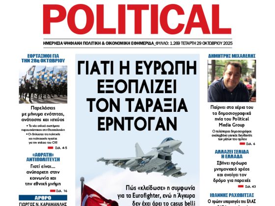ΕφημερίδαPolitical 30.10.2530 Οκτωβρίου, 2025 Total 0 Shares Share 0 Tweet 0 Share 0 Share 0 Share 0 Share 0 Share 0 Share 0 Πατήστε το εικονίδιο και διαβάστε την εφημερίδα σε μορφή PDF Total 1 Shares Share 0 Tweet 0 Pin it 1 Προηγούμενο άρθρο Εφημερίδα Political 29.10.25 29 Οκτωβρίου, 2025 Δείτε περισσότερα Εγγραφή ΕΓΓΡΑΦΕΙΤΕ ΣΤΟ NEWSLETTER ΜΑΣ Subscribe ΕΠΙΛΕΓΟΝΤΑΣ ΑΥΤΟ ΤΟ ΠΛΑΙΣΙΟ, ΕΠΙΒΕΒΑΙΩΝΕΤΕ ΟΤΙ ΕΧΕΤΕ ΔΙΑΒΑΣΕΙ ΚΑΙ ΑΠΟΔΕΧΕΣΤΕ ΤΟΥΣ ΟΡΟΥΣ ΧΡΗΣΗΣ ΜΑΣ ΣΧΕΤΙΚΑ ΜΕ ΤΗΝ ΑΠΟΘΗΚΕΥΣΗ ΤΩΝ ΔΕΔΟΜΕΝΩΝ ΠΟΥ ΥΠΟΒΑΛΛΟΝΤΑΙ ΜΕΣΩ ΑΥΤΗΣ ΤΗΣ ΦΟΡΜΑΣ. Σύμφωνα με τον Κανονισμό ΕΕ 2016/679 του Ευρωπαϊκού Κοινοβουλίου {Γενικός Κανονισμός Προστασίας Προσωπικών Δεδομένων (GDPR)} που έχει τεθεί σε ισχύ από τις 25 Μαΐου 2018, και του Ν.4624/2019 που έχει τεθεί σε ισχύ από 29/8/2019, απαιτείται η συγκατάθεσή σας για να μετέχετε στην επικοινωνία με την παρούσα διεύθυνση ηλεκτρονικού ταχυδρομείου ή το κινητό σας τηλέφωνο. Σε περίπτωση που δεν επιθυμείτε να λαμβάνετε μηνύματα και ενημερώσεις από την παρούσα ηλεκτρονική διεύθυνση ή/και δεν επιθυμείτε να τηρούμε αρχείο της διεύθυνσης ηλεκτρονικού ταχυδρομείου ή και του αριθμού του κινητού σας τηλεφώνου, μπορείτε να ασκήσετε τα δικαιώματά σας βάσει του άρθρου 13,παρ.2, του Κανονισμού ΕΕ 2016/679 και να διαγραφείτε κάνοντας κλικ στο link που ακολουθεί. Σας ενημερώνουμε επίσης ότι η διεύθυνση ηλεκτρονικού σας ταχυδρομείου ή το κινητό σας τηλέφωνο, παραμένουν απόρρητα και δεν γνωστοποιούνται σε τρίτους. Εάν λάβατε το μήνυμα αυτό κατά λάθος, παρακαλούμε δεχθείτε τις απολογίες μας για την ενόχληση. Δείτε επίσης... Δείτε περισσότερα Political 29.10.25 29 Οκτωβρίου, 2025 Δείτε περισσότερα Political 25.10.25 25 Οκτωβρίου, 2025 Δείτε περισσότερα Political 24.10.25 24 Οκτωβρίου, 2025 Δείτε περισσότερα Political 23.10.25 23 Οκτωβρίου, 2025 Δείτε περισσότερα Political 22.10.25 22 Οκτωβρίου, 2025 Δείτε περισσότερα Political 21.10.25 21 Οκτωβρίου, 2025 Δείτε περισσότερα Political 18.10.25 18 Οκτωβρίου, 2025 Δείτε περισσότερα Political 17.10.25 17 Οκτωβρίου, 2025