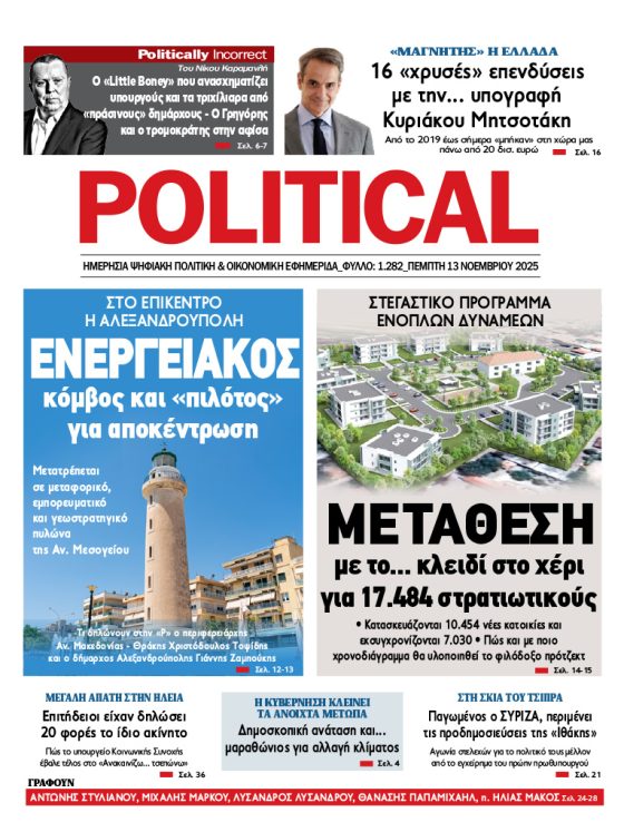 ΕφημερίδαPolitical 31.07.2531 Ιουλίου, 2025 Total 0 Shares Share 0 Tweet 0 Share 0 Share 0 Share 0 Share 0 Share 0 Share 0 Πατήστε το εικονίδιο και διαβάστε την εφημερίδα σε μορφή PDF Total 0 Shares Share 0 Tweet 0 Pin it 1 Προηγούμενο άρθρο Εφημερίδα Political 30.07.25 30 Ιουλίου, 2025 Δείτε περισσότερα Επόμενο άρθρο Εφημερίδα Political 01.08.25 1 Αυγούστου, 2025 Δείτε περισσότερα Εγγραφή ΕΓΓΡΑΦΕΙΤΕ ΣΤΟ NEWSLETTER ΜΑΣ Subscribe ΕΠΙΛΕΓΟΝΤΑΣ ΑΥΤΟ ΤΟ ΠΛΑΙΣΙΟ, ΕΠΙΒΕΒΑΙΩΝΕΤΕ ΟΤΙ ΕΧΕΤΕ ΔΙΑΒΑΣΕΙ ΚΑΙ ΑΠΟΔΕΧΕΣΤΕ ΤΟΥΣ ΟΡΟΥΣ ΧΡΗΣΗΣ ΜΑΣ ΣΧΕΤΙΚΑ ΜΕ ΤΗΝ ΑΠΟΘΗΚΕΥΣΗ ΤΩΝ ΔΕΔΟΜΕΝΩΝ ΠΟΥ ΥΠΟΒΑΛΛΟΝΤΑΙ ΜΕΣΩ ΑΥΤΗΣ ΤΗΣ ΦΟΡΜΑΣ. Σύμφωνα με τον Κανονισμό ΕΕ 2016/679 του Ευρωπαϊκού Κοινοβουλίου {Γενικός Κανονισμός Προστασίας Προσωπικών Δεδομένων (GDPR)} που έχει τεθεί σε ισχύ από τις 25 Μαΐου 2018, και του Ν.4624/2019 που έχει τεθεί σε ισχύ από 29/8/2019, απαιτείται η συγκατάθεσή σας για να μετέχετε στην επικοινωνία με την παρούσα διεύθυνση ηλεκτρονικού ταχυδρομείου ή το κινητό σας τηλέφωνο. Σε περίπτωση που δεν επιθυμείτε να λαμβάνετε μηνύματα και ενημερώσεις από την παρούσα ηλεκτρονική διεύθυνση ή/και δεν επιθυμείτε να τηρούμε αρχείο της διεύθυνσης ηλεκτρονικού ταχυδρομείου ή και του αριθμού του κινητού σας τηλεφώνου, μπορείτε να ασκήσετε τα δικαιώματά σας βάσει του άρθρου 13,παρ.2, του Κανονισμού ΕΕ 2016/679 και να διαγραφείτε κάνοντας κλικ στο link που ακολουθεί. Σας ενημερώνουμε επίσης ότι η διεύθυνση ηλεκτρονικού σας ταχυδρομείου ή το κινητό σας τηλέφωνο, παραμένουν απόρρητα και δεν γνωστοποιούνται σε τρίτους. Εάν λάβατε το μήνυμα αυτό κατά λάθος, παρακαλούμε δεχθείτε τις απολογίες μας για την ενόχληση. Δείτε επίσης... Δείτε περισσότερα Political 12.11.25 12 Νοεμβρίου, 2025 Δείτε περισσότερα Political 11.11.25 11 Νοεμβρίου, 2025 Δείτε περισσότερα Political 10.11.25 10 Νοεμβρίου, 2025 Δείτε περισσότερα Political 08.11.25 8 Νοεμβρίου, 2025 Δείτε περισσότερα Political 07.11.25 7 Νοεμβρίου, 2025 Δείτε περισσότερα Political 06.11.25 6 Νοεμβρίου, 2025 Δείτε περισσότερα Political 05.11.25 5 Νοεμβρίου, 2025 Δείτε περισσότερα Political 04.11.25 4 Νοεμβρίου, 2025