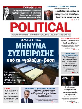 Δείτε περισσότερα Εφημερίδα Political 11.11.25 11 Νοεμβρίου, 2025 Πατήστε το εικονίδιο και διαβάστε την εφημερίδα σε μορφή PDFΔείτε περισσότερα Share 0 0 0 0 0 0 0 0