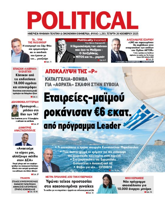 Δείτε περισσότερα Εφημερίδα Political 06.11.25 6 Νοεμβρίου, 2025 Πατήστε το εικονίδιο και διαβάστε την εφημερίδα σε μορφή PDFΔείτε περισσότερα Share 0 0 0 0 0 0 0 0