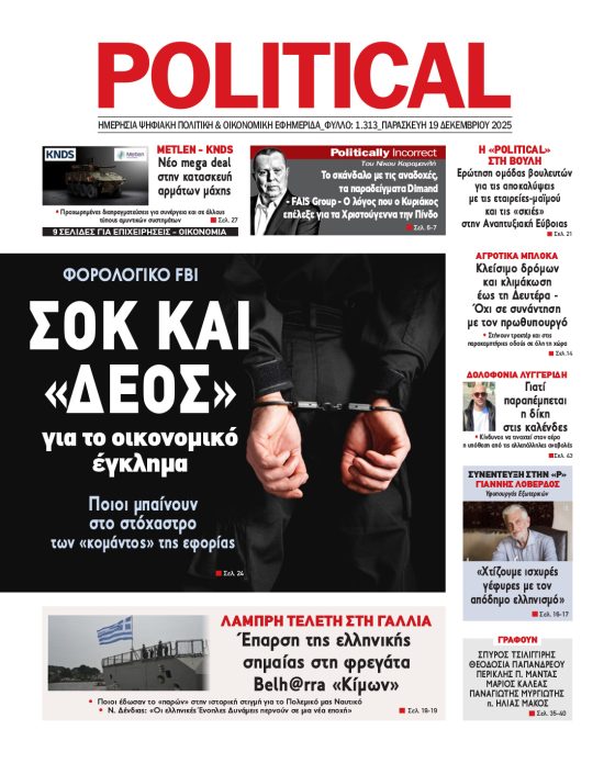 Δείτε περισσότερα Εφημερίδα Political 15.12.25 15 Δεκεμβρίου, 2025 Πατήστε το εικονίδιο και διαβάστε την εφημερίδα σε μορφή PDFΔείτε περισσότερα Share 0 0 0 0 0 0 0 0